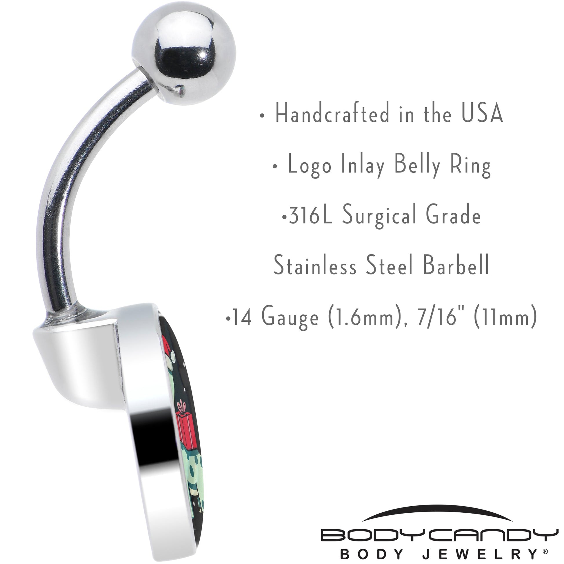 Add a festive roar to your holiday style with this Christmas Holiday Dinosaur Belly Ring! Featuring artist hand-drawn artwork of an adorable dinosaur decked out in holiday cheer, this piece is perfect for spreading seasonal joy. Crafted from hypoallergenic materials, it's designed for comfort and safety, even for sensitive skin. This 14 gauge belly button ring is carefully hand-assembled in the USA, ensuring quality and uniqueness in every detail. Make your holiday outfit unforgettable with this whimsical and fun belly ring