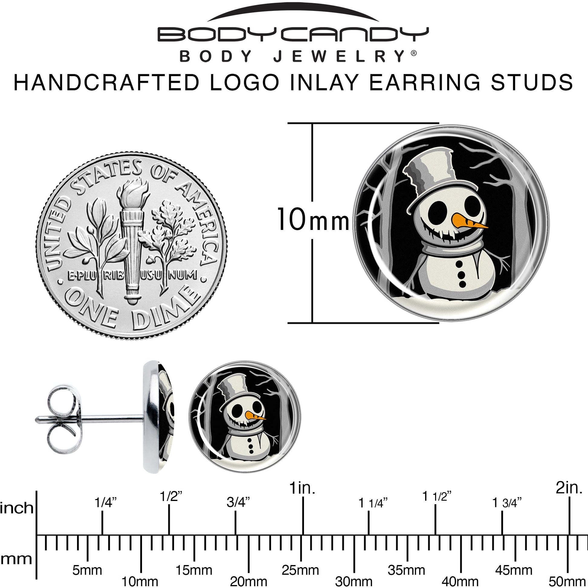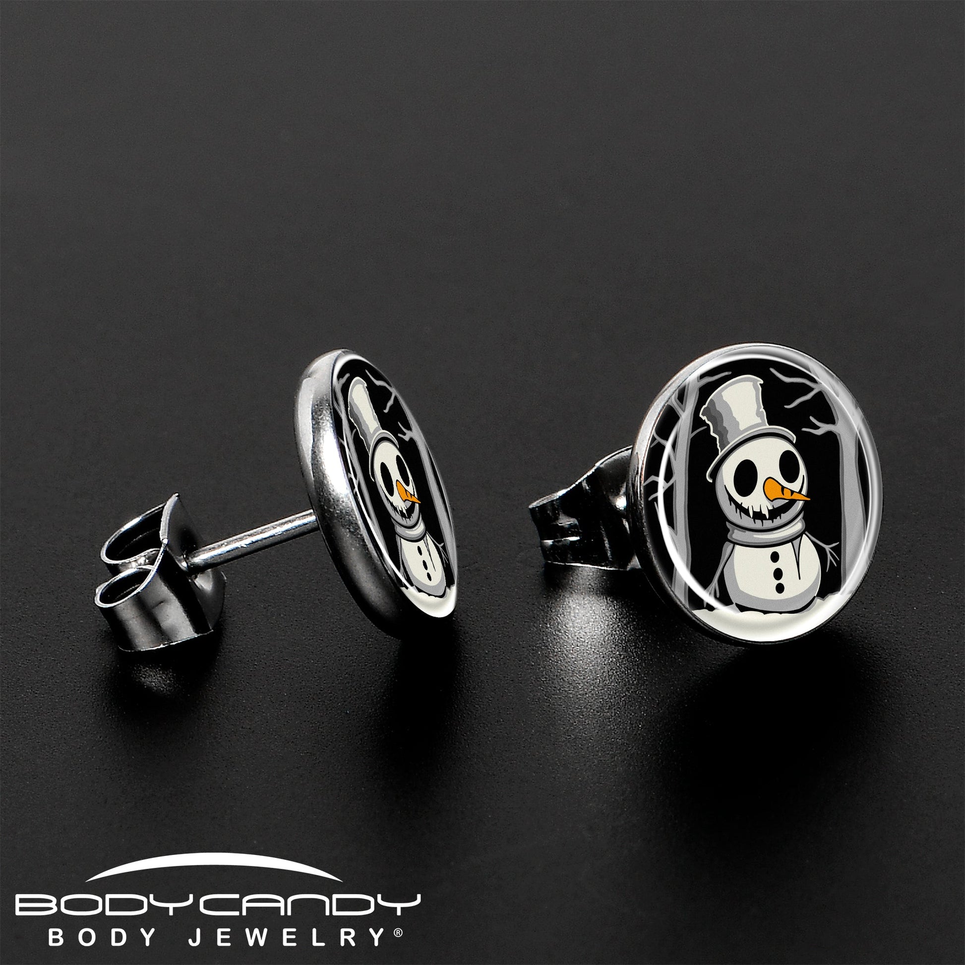 Christmas Holiday Spooky Snowman Stud Earrings by Onyx O