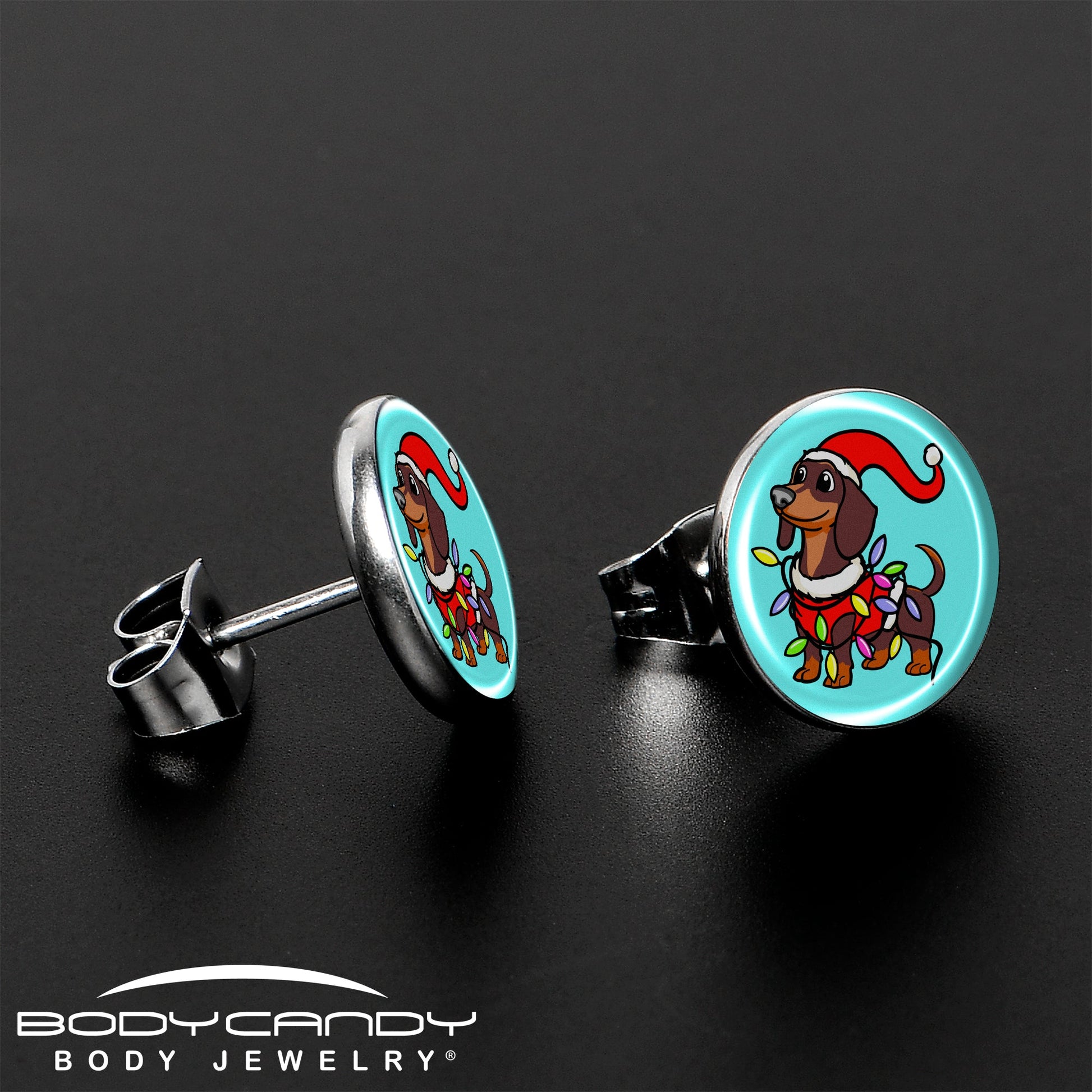 Christmas Holiday Weiner Dog Stud Earrings by Onyx O
