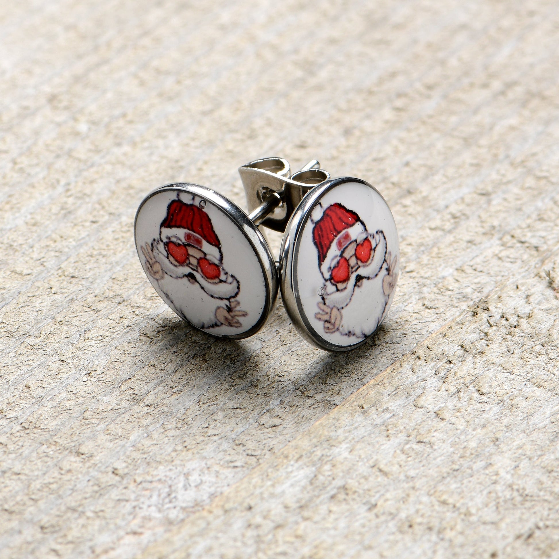 Hypoallergenic jewelry for sensitive skin.Christmas Peace Love Santa Stud Earrings