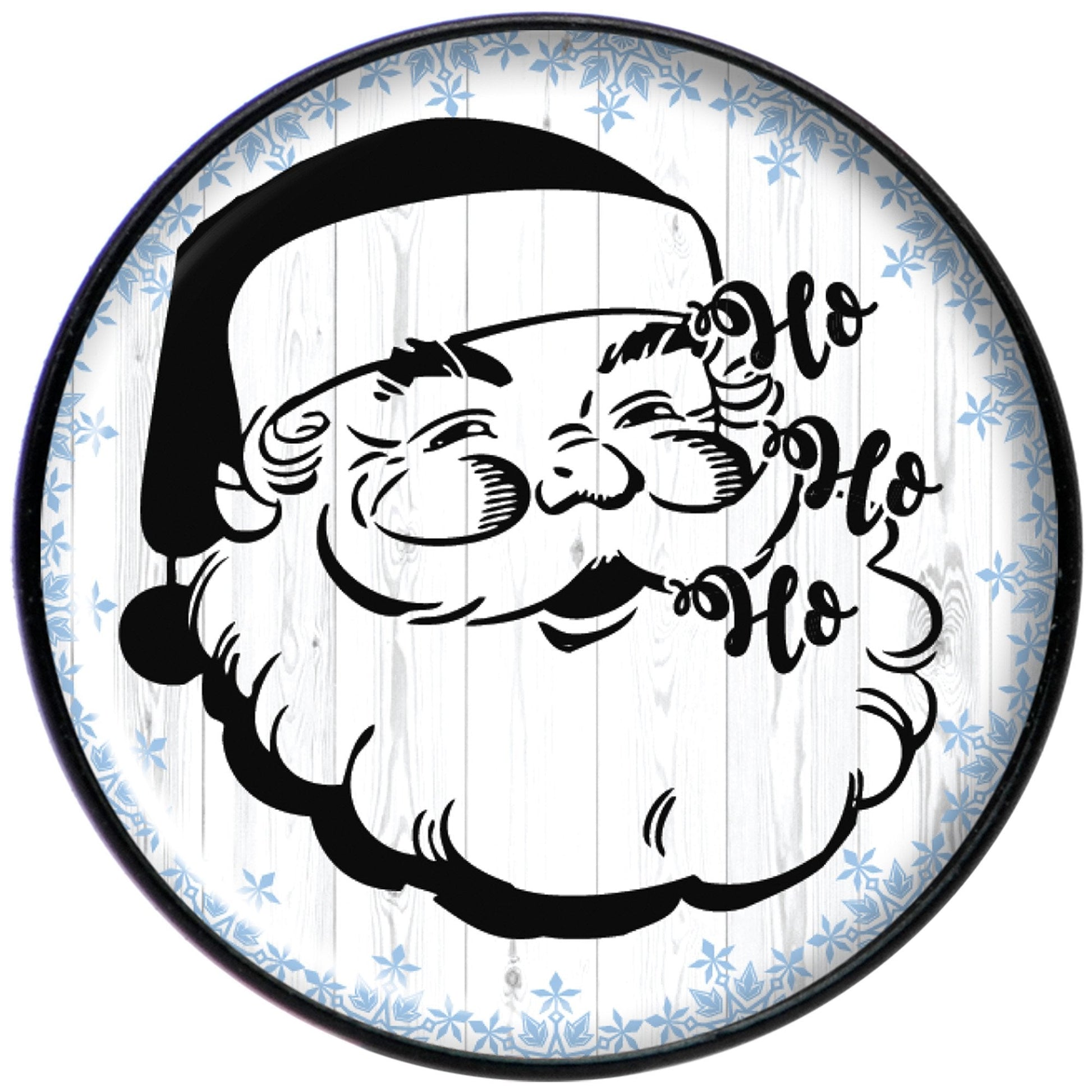 Get decked out from head to toe in Christmas spirit when you wear this festive pair of festive holiday earrings! Made with a black PVD over stainless steel posts with friction backings, these earrings for women features a black on blue retro Christmas Santa Clause saying "Ho Ho Ho" logo inlay. This pair of retro Santa earrings makes a perfect seasonal gift too.