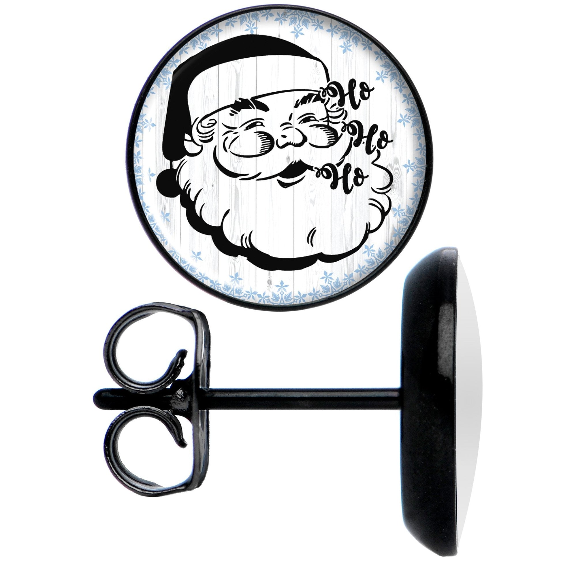 Christmas Retro Santa Ho Ho Ho Black Stud Earrings