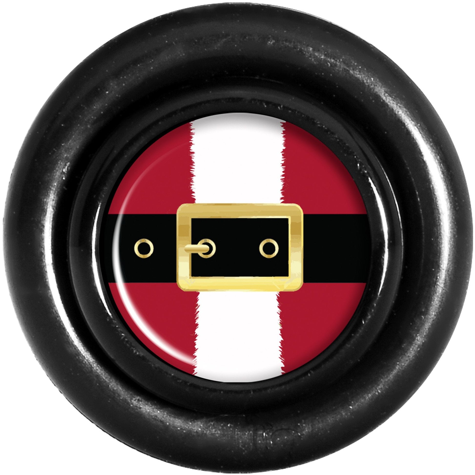 Get decked out from head to toe without the pain of stretching your ears when you wear this pair of festive fake holiday plugs! Made with black anodized over 316L surgical grade stainless steel posts, these faux plugs fit a 16 gauge piercing but look like a size 0 and feature red, white, and black Santa suit logo inlays. This pair of Christmas fake plug earrings is sold as a set of two for you, and makes a perfect seasonal gift too.