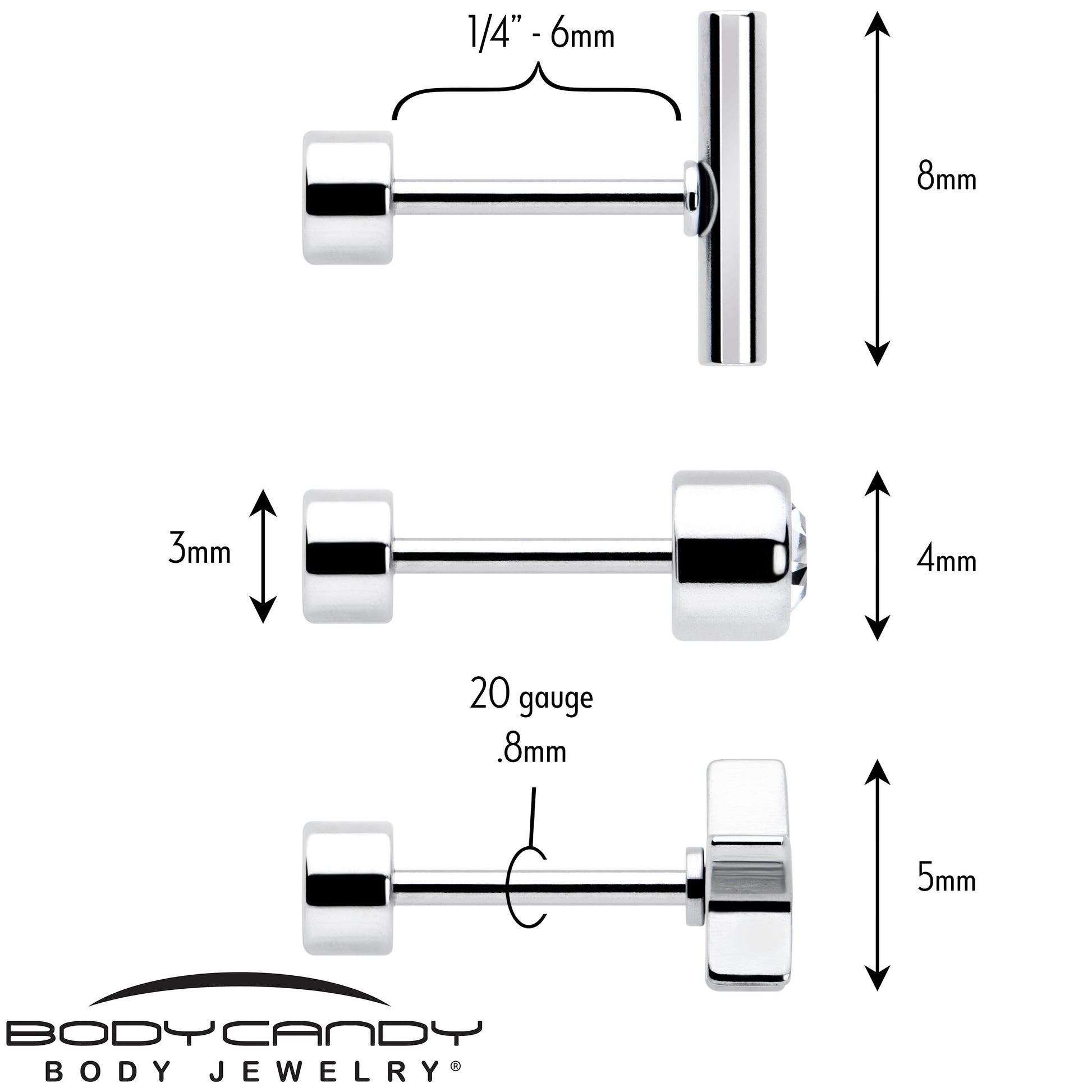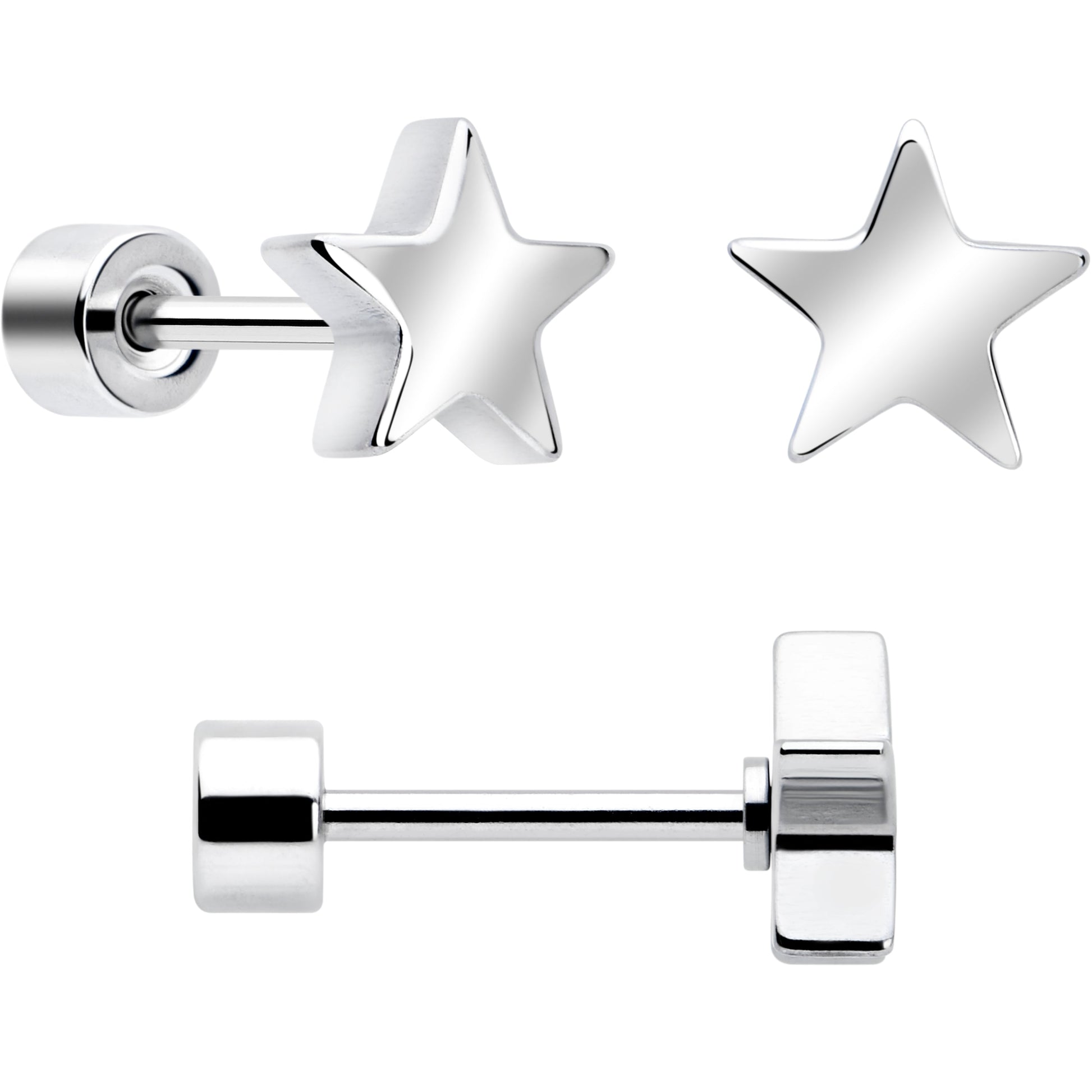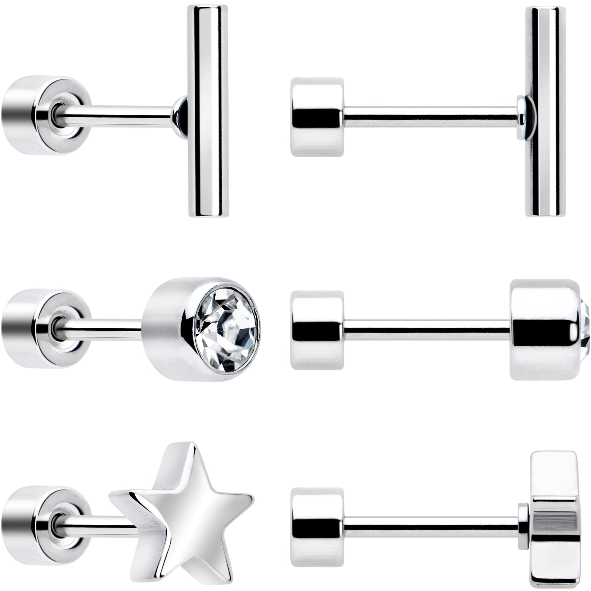 20 Gauge (.8mm), 1/4" (4mm), 316L Surgical Grade Stainless Steel, Star Bar and CZ Tops, Screw Back, Flat Back Earrings, Set of 3 Pairs
