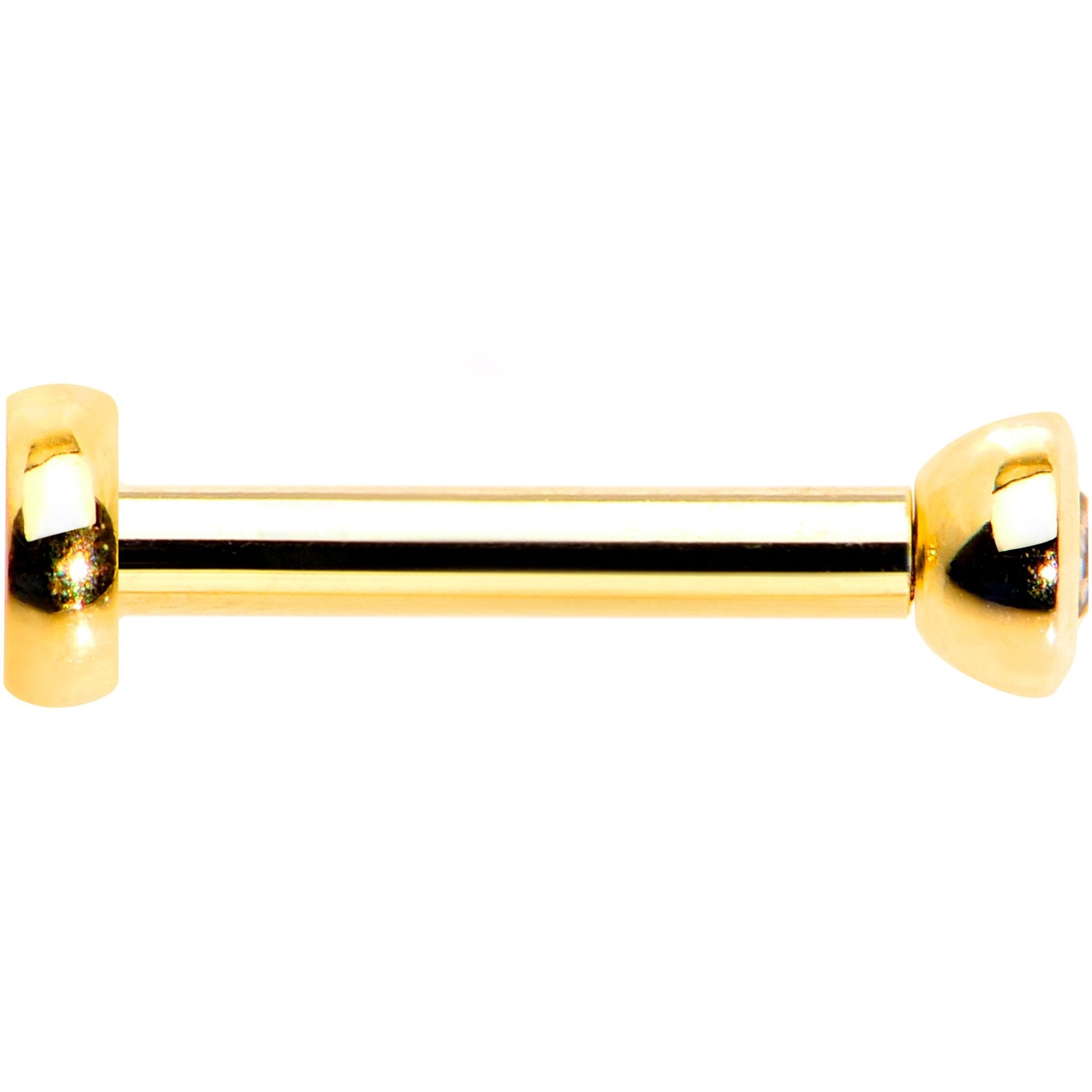 If you're bored of plain labrets and cartilage jewelry then grab one of these internally threaded tragus earrings to elevate your style. The 18 gauge helix piercing is made from a 6mm gold PVD over 316L surgical grade stainless steel post with a flat backing for a snug fit in your smallest piercings. The post is internally threaded which means that the 2mm clear gem that decorates the stud screws into the barbell from the front.