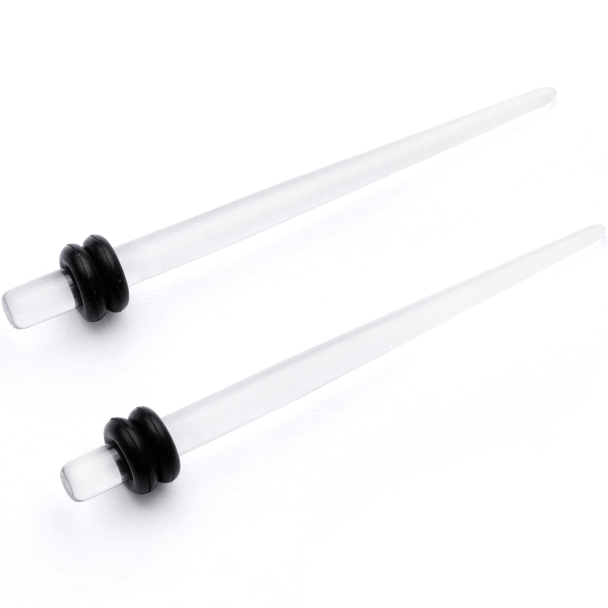 Looking to stretch your pierced earlobes? The answer is clear with these clear acrylic straight taper gauges! They're made with lightweight acrylic for comfortable wear and rubber o-rings for a secure fit. These tapered plugs gradually widen to allow you to gently stretch your earlobes to the next gauge. Clearly, these are exactly what you're looking for! Sold as a set of two. NOTE: Prices of plugs may vary based on plug ear gauge size selected from drop down. Specifications