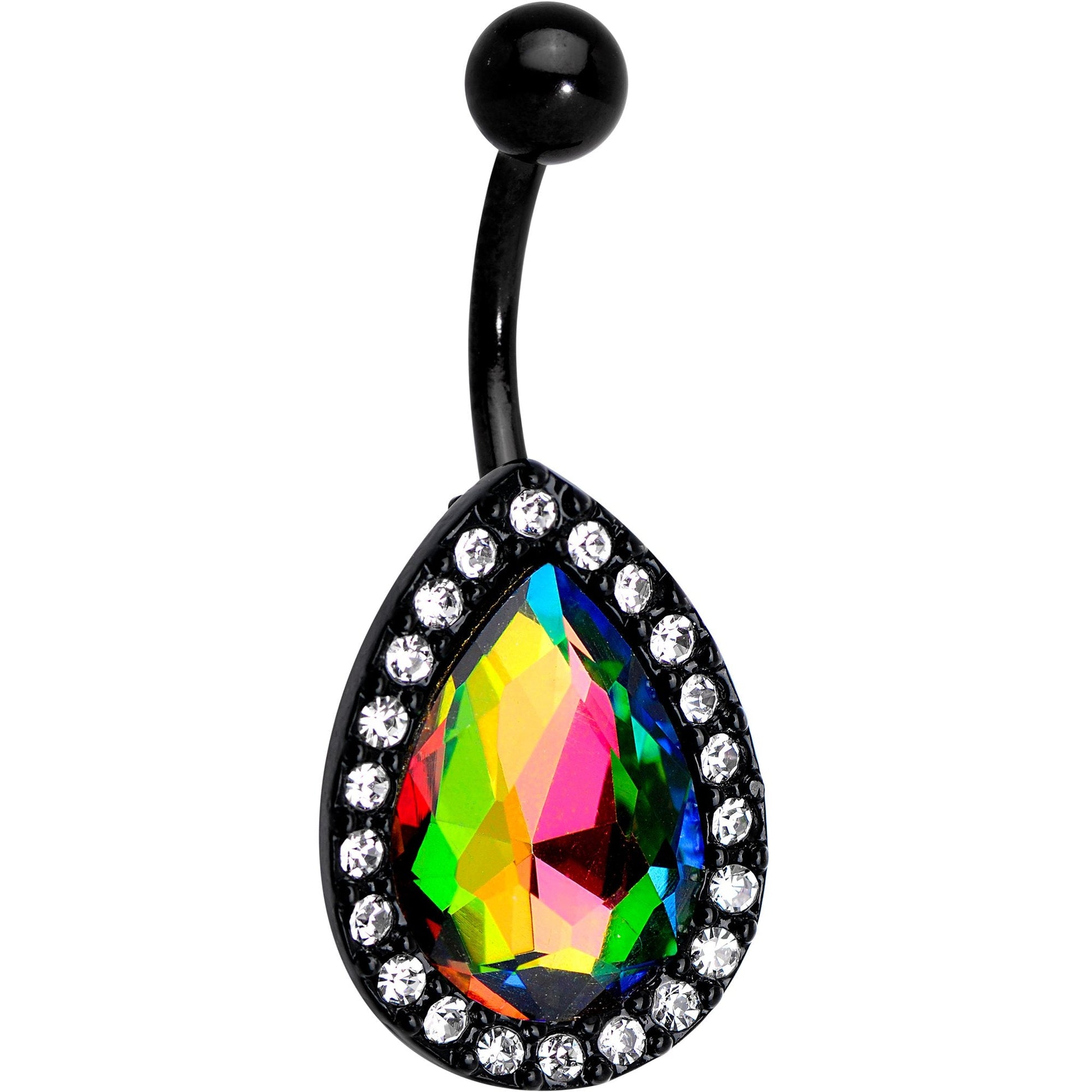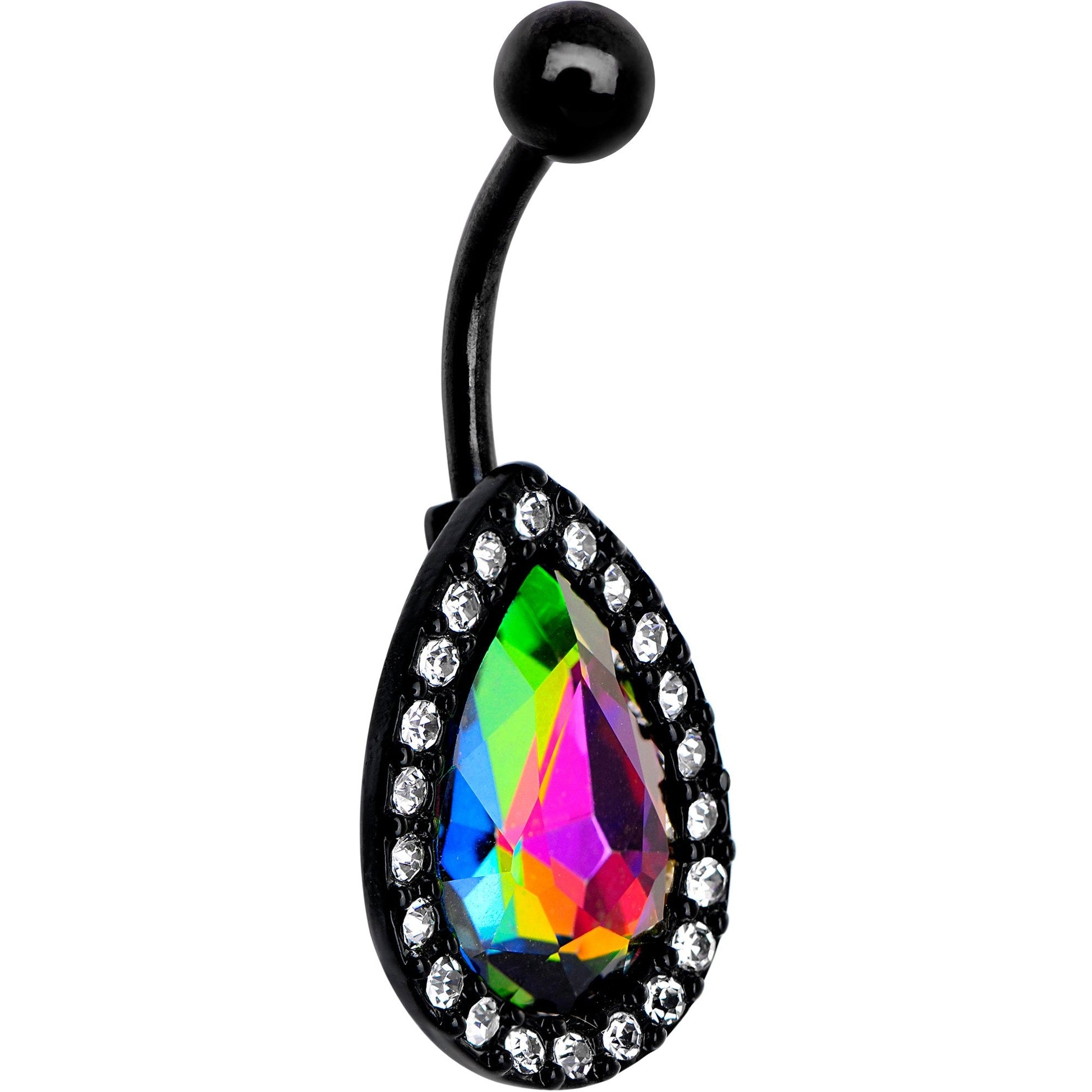 Clear Aurora Gem Black Anodized Teardrop Mirror Belly Ring