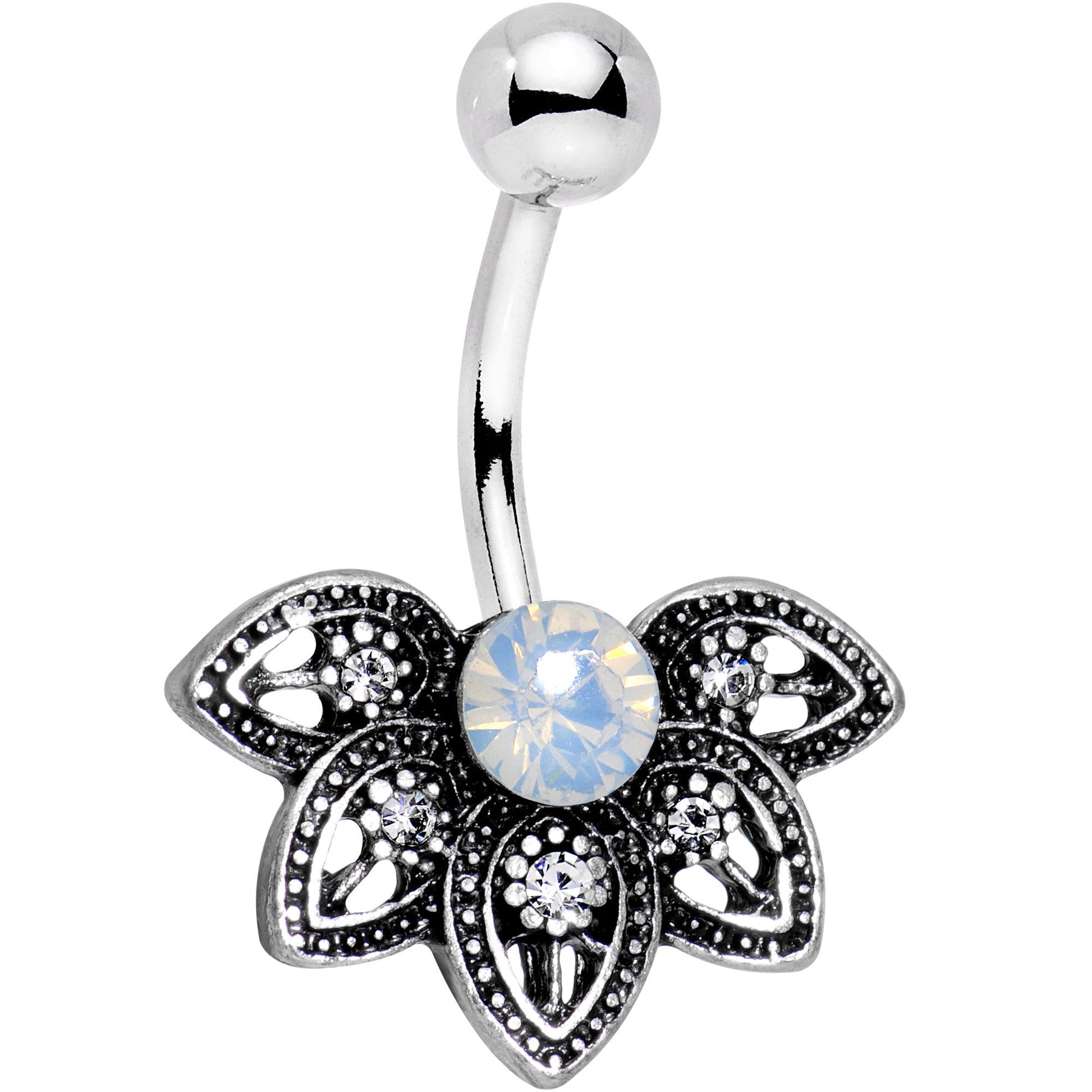 Clear Aurora Gem Lovely Petal Flower Belly Ring