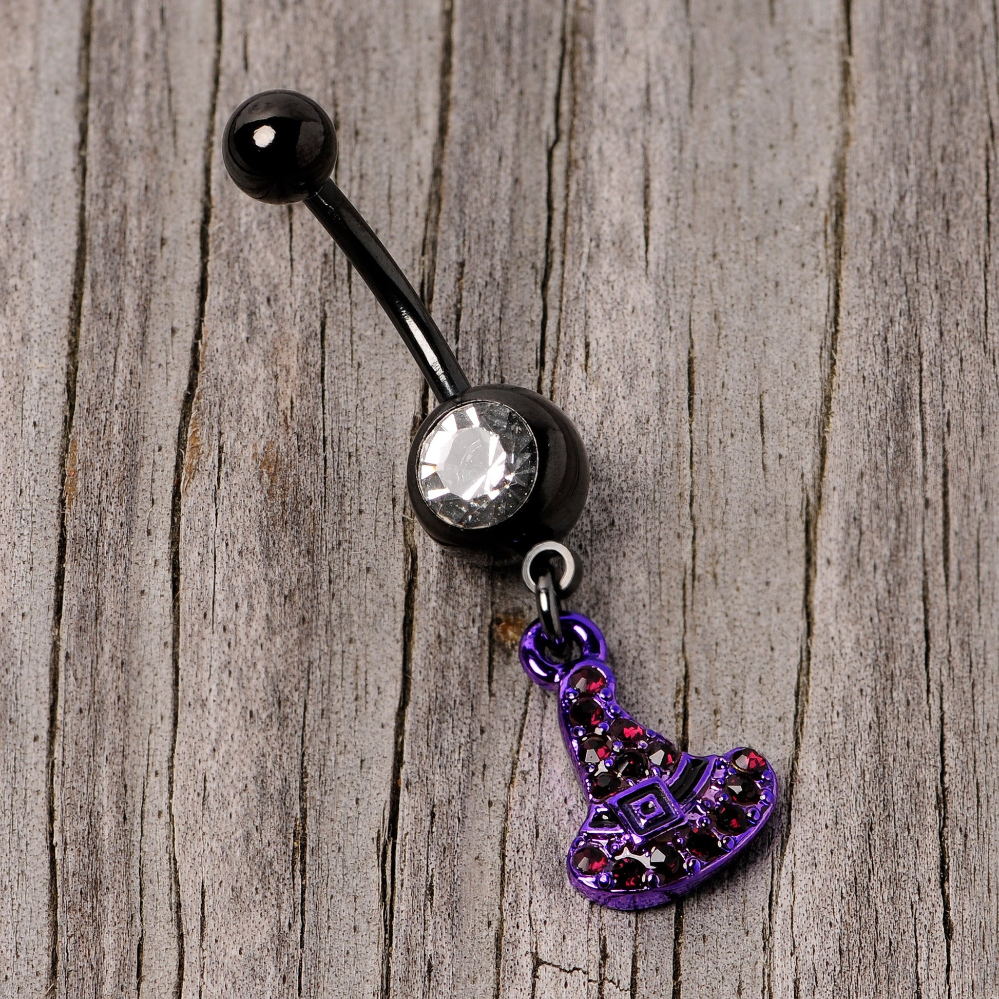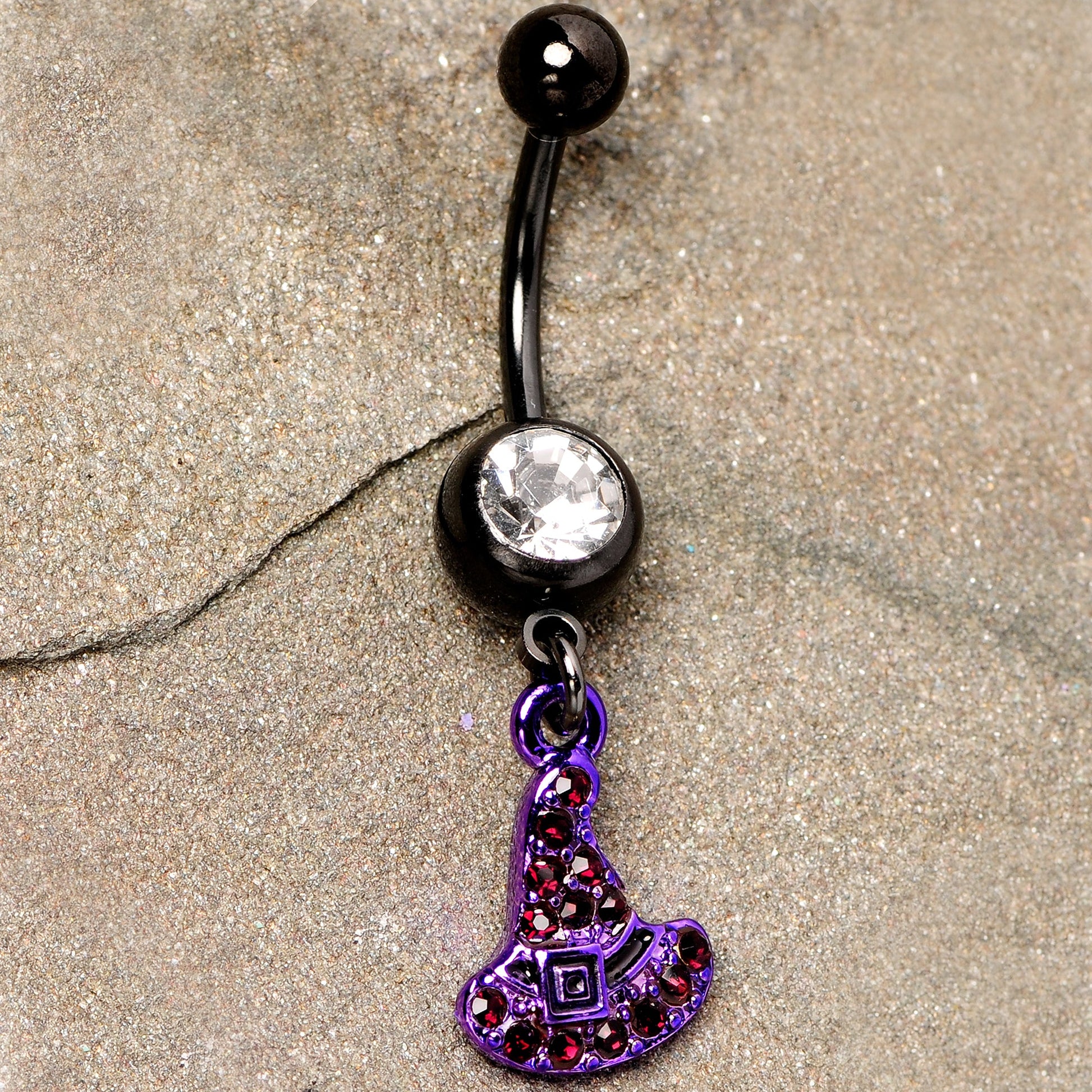 Clear Black Gem Black Purple Witch Hat Halloween Dangle Belly Ring