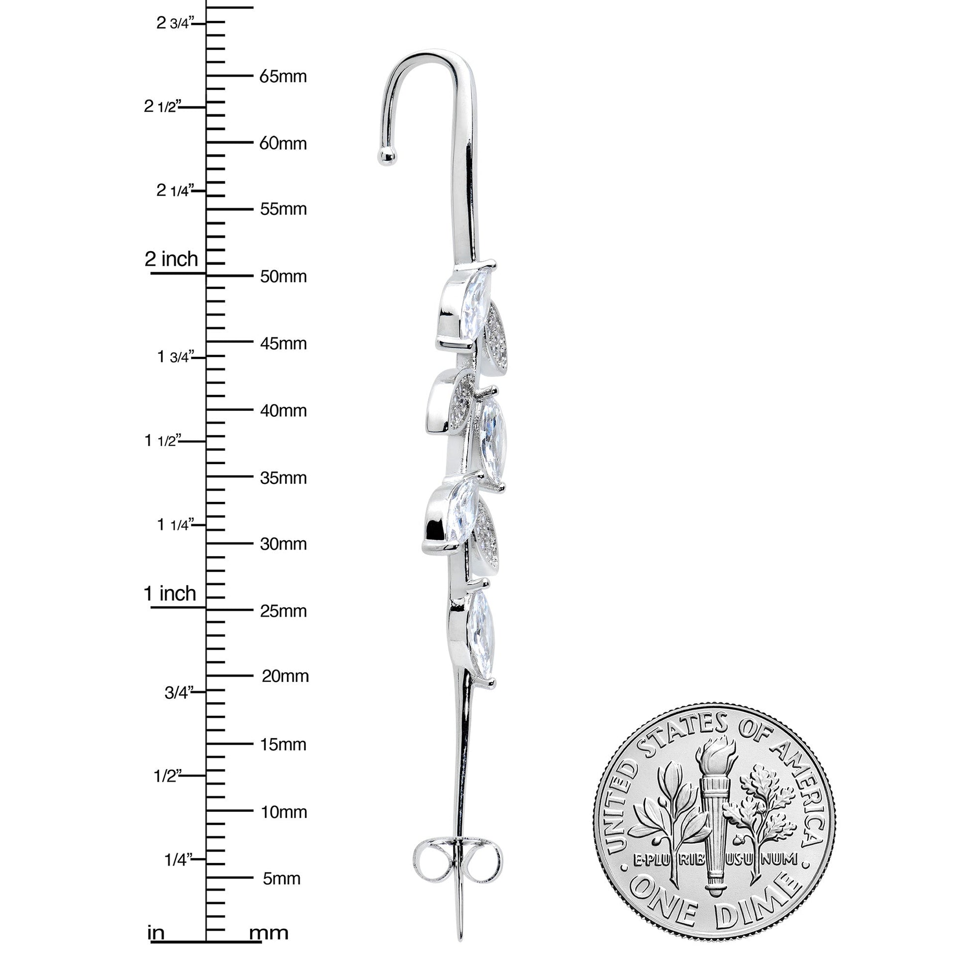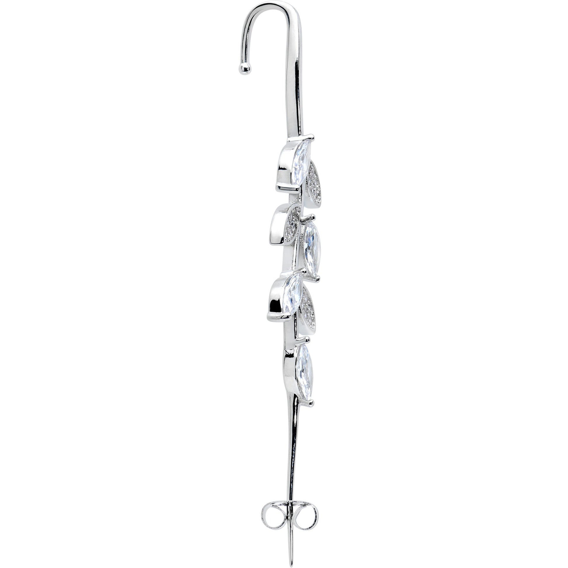 Clear CZ Gem Alternating Style Leafy Vine Ear Cuff Bar Earring