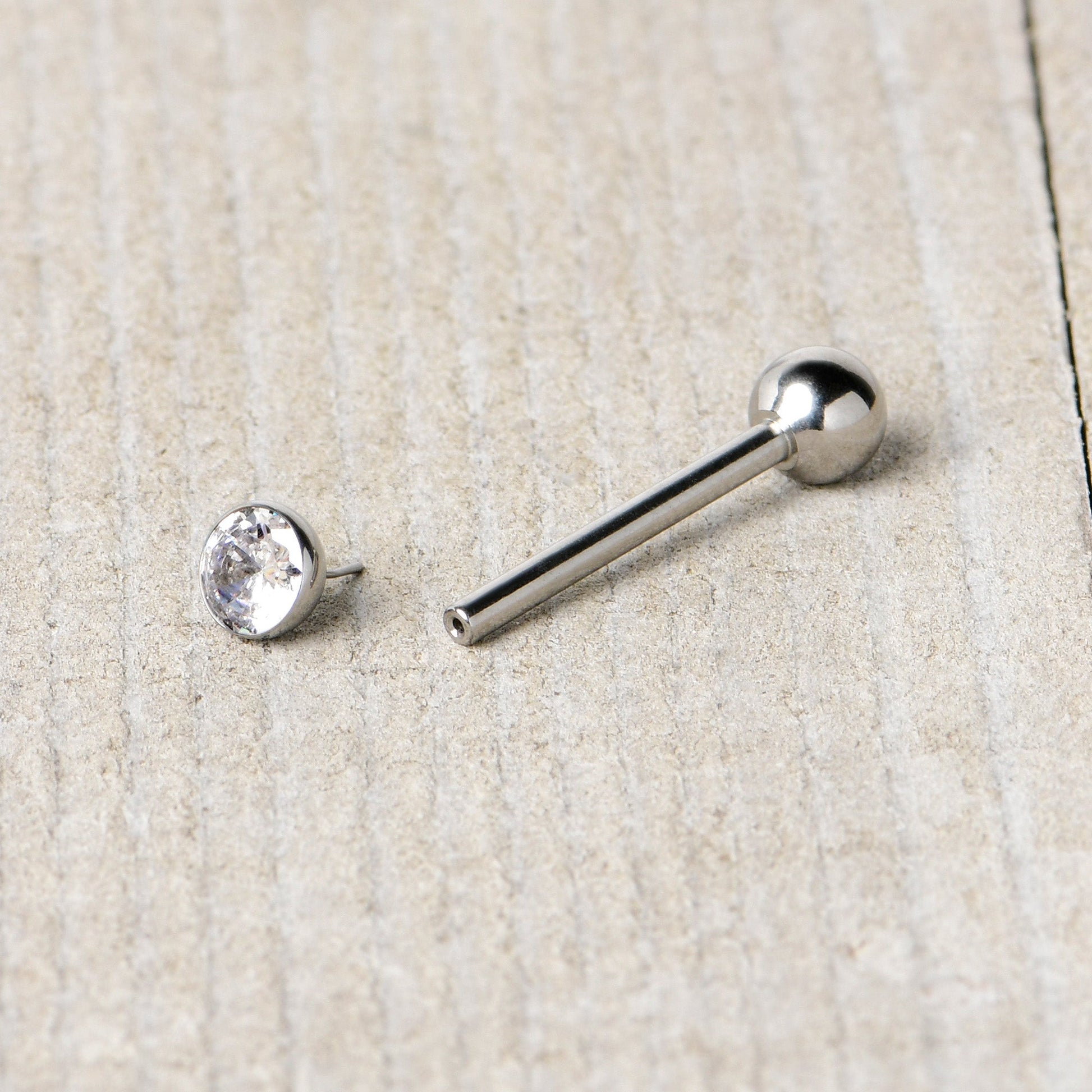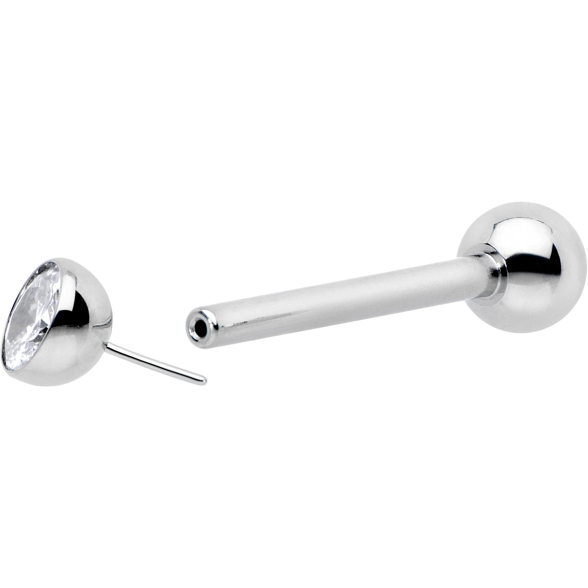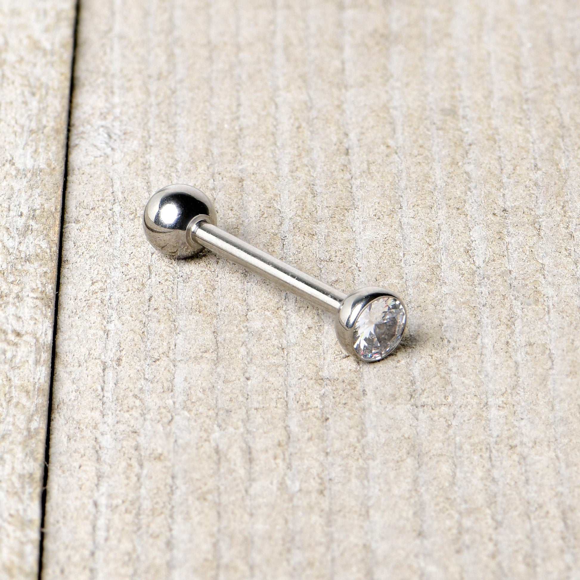 Clear CZ Gem ASTM F-136 Implant Grade Titanium Threadless Barbell Tongue Ring