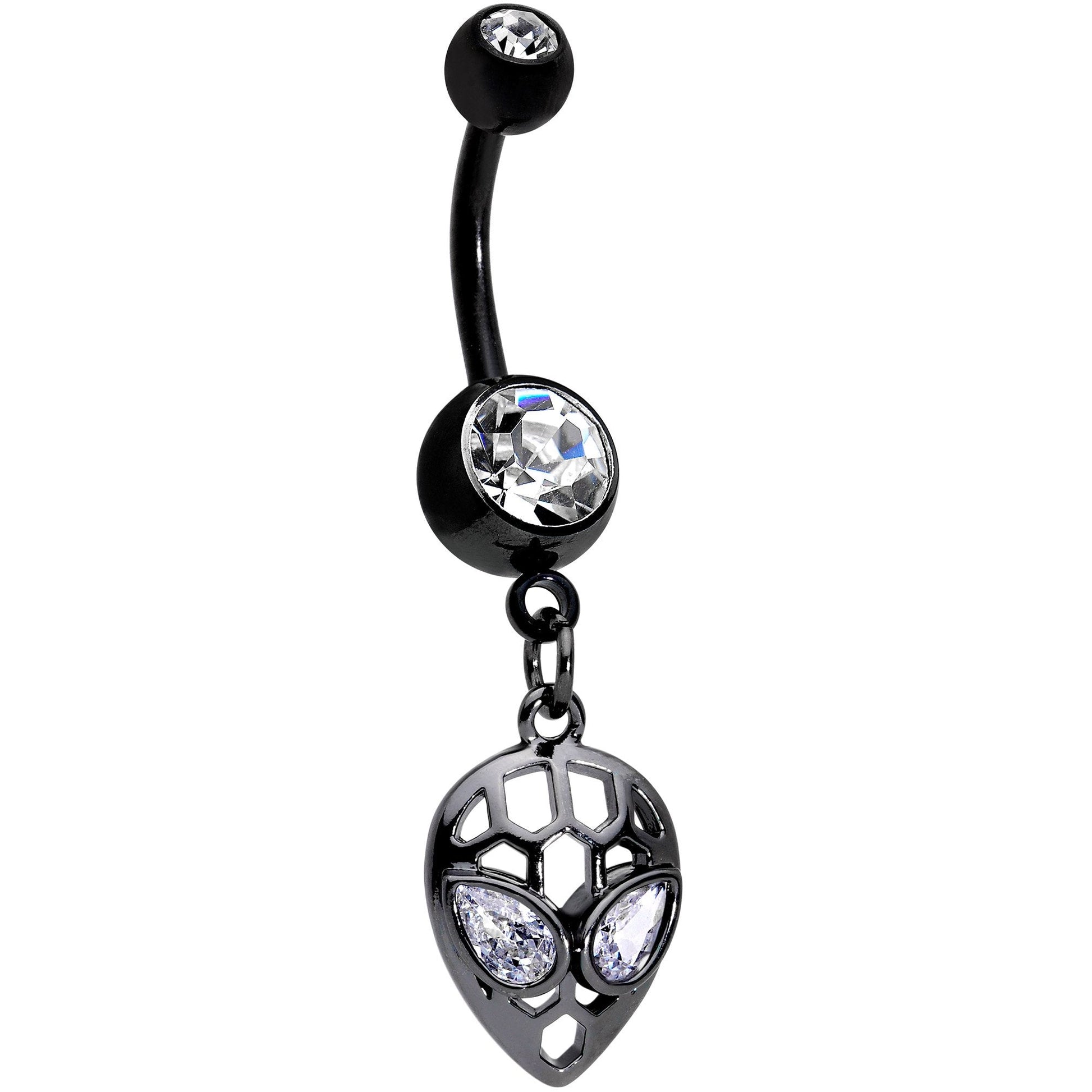 Clear CZ Gem Black Openwork Alien Dangle Belly Ring