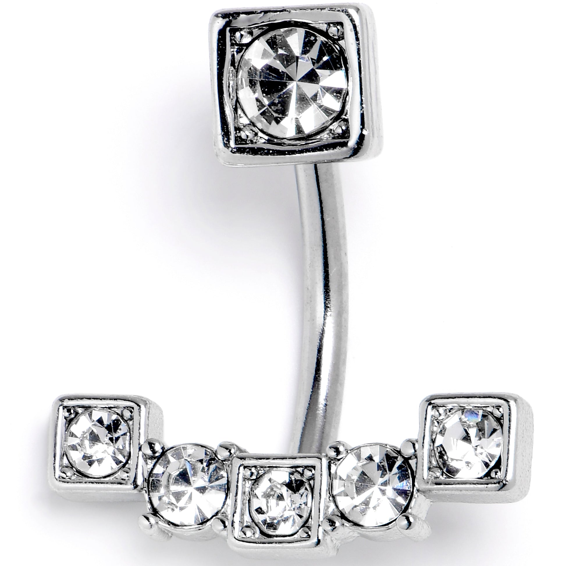 Clear CZ Gem Blocky Arch Double Mount Belly Ring