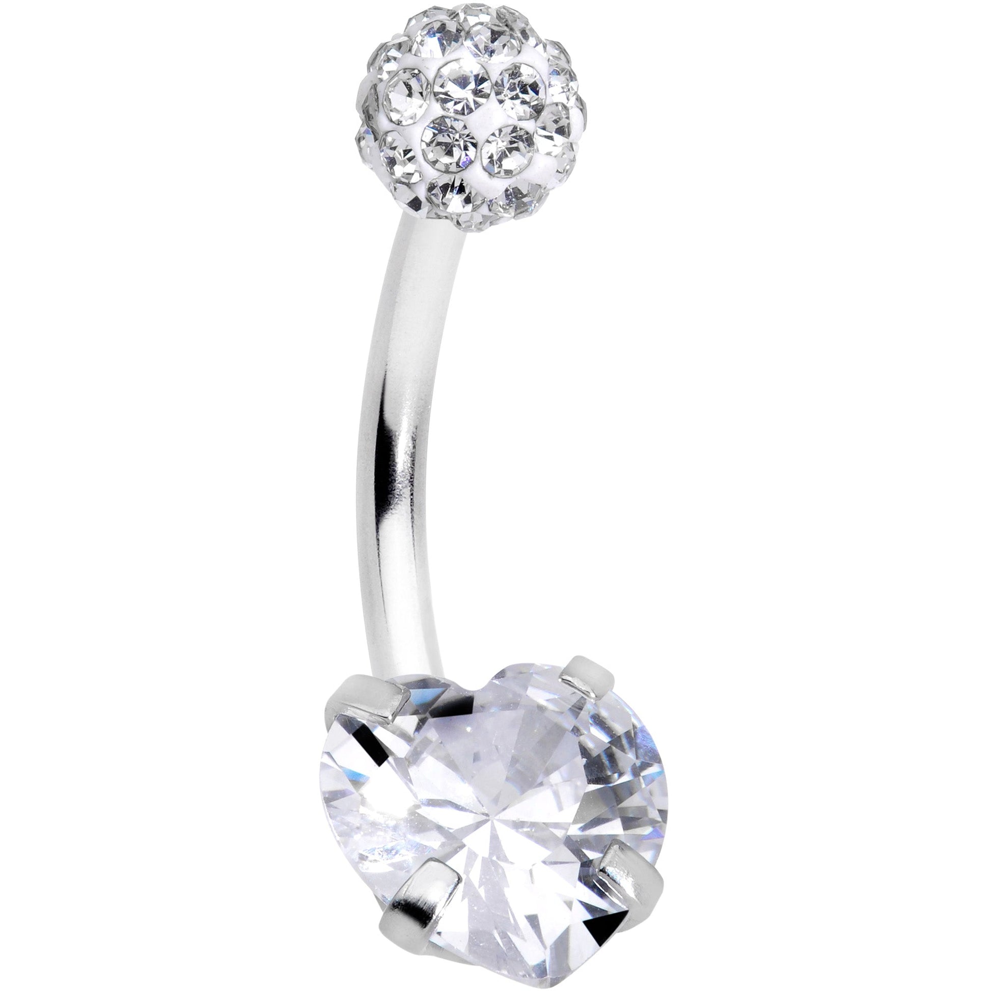 Clear CZ Gem Disco Ball Heart Belly Ring