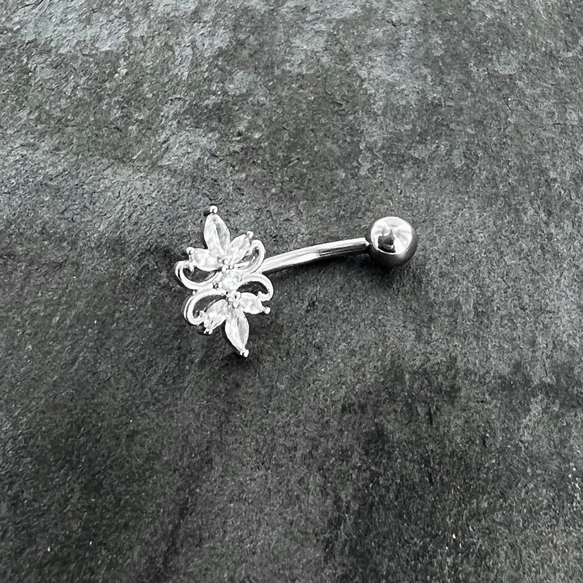 Clear CZ Gem Elegant Double Heart Baroque Belly Ring