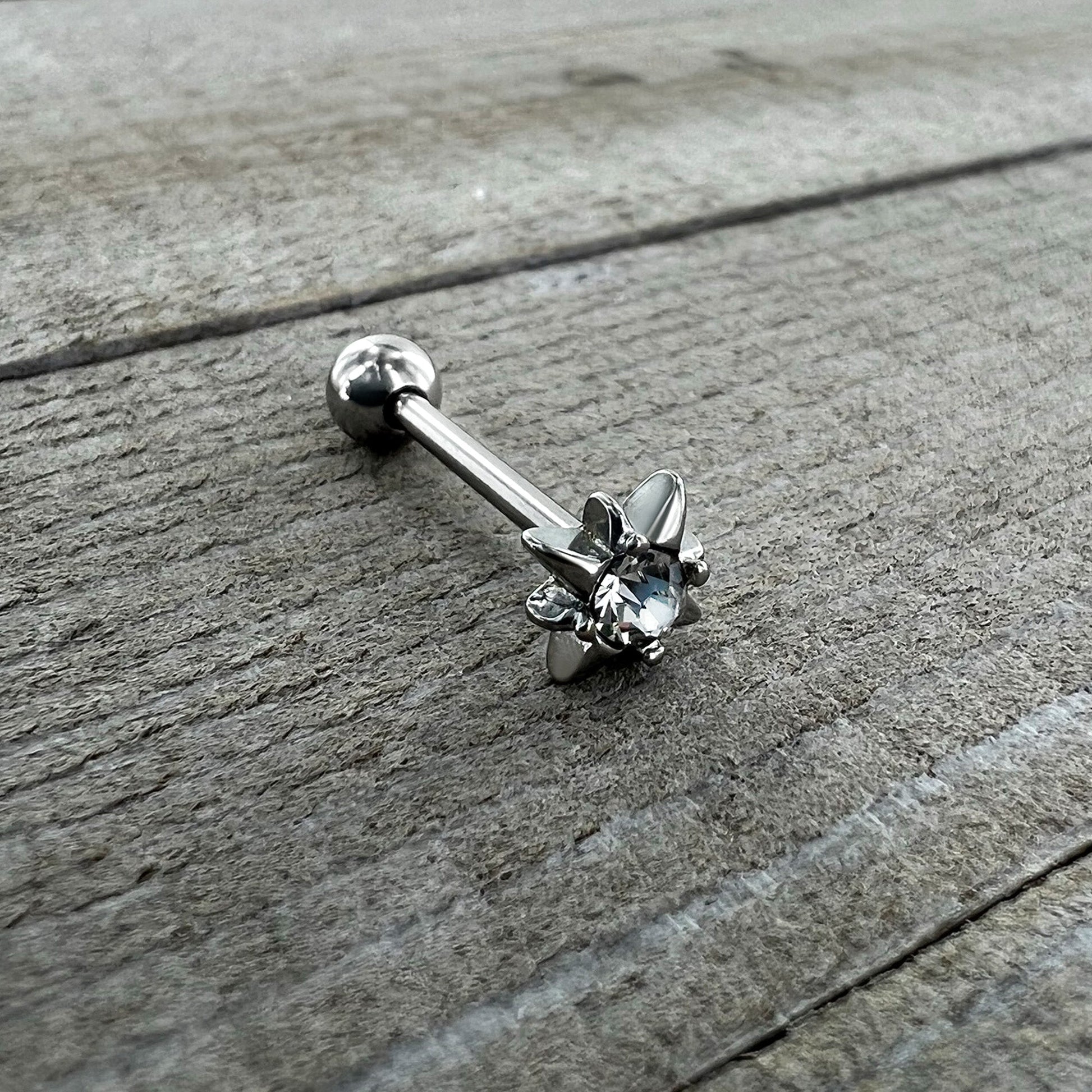 Clear CZ Gem Evening Star Barbell Tongue Ring