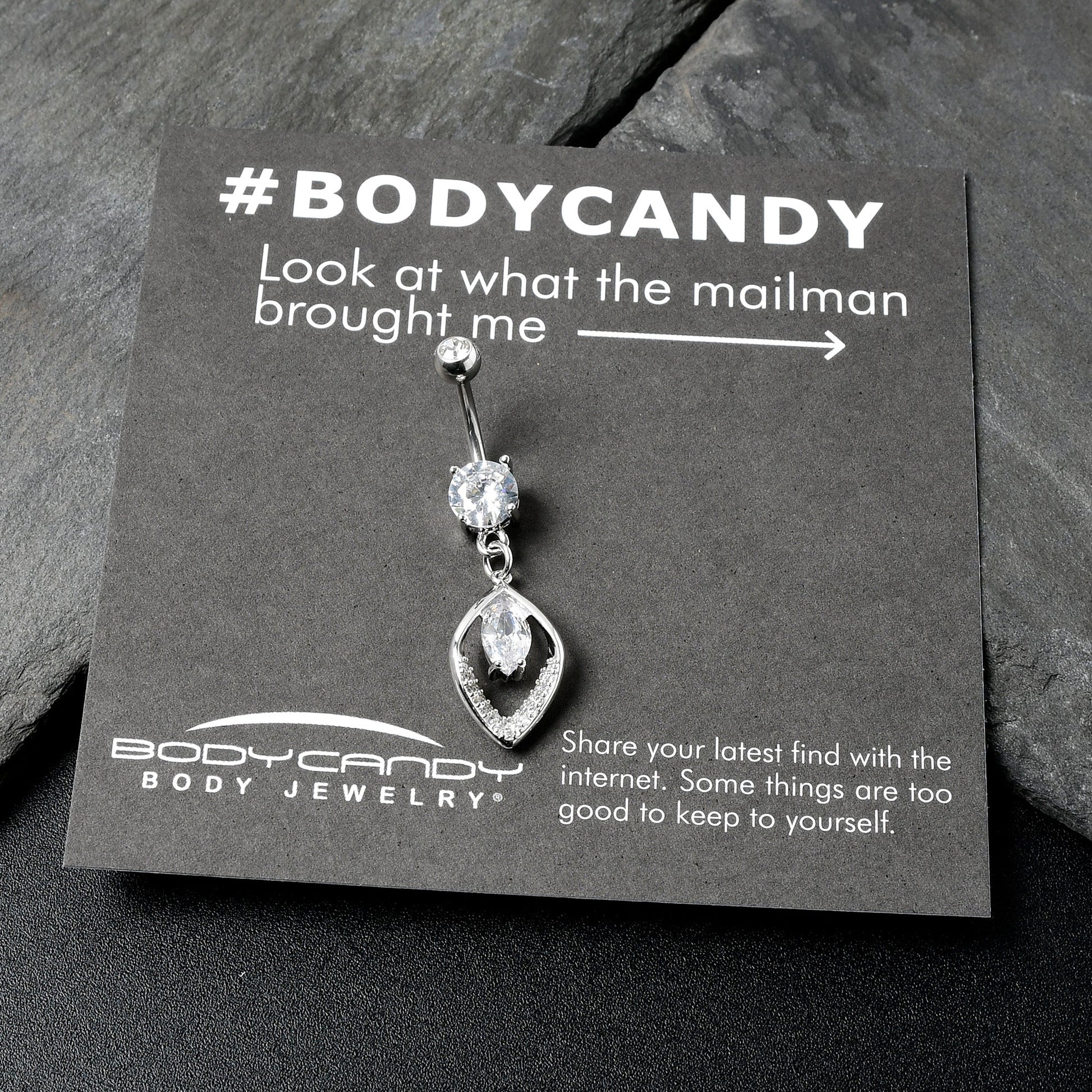 Clear CZ Gem Lush Leaf Dangle Belly Ring