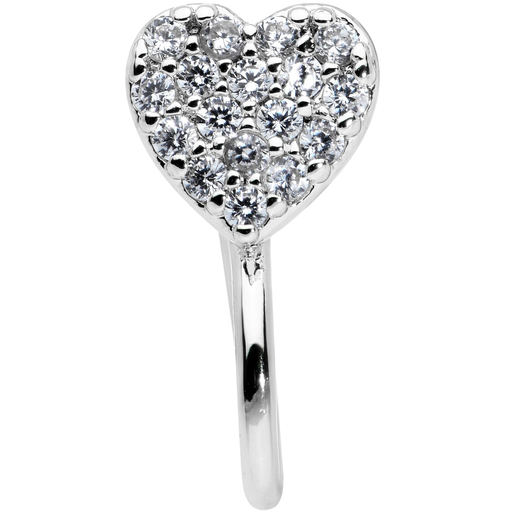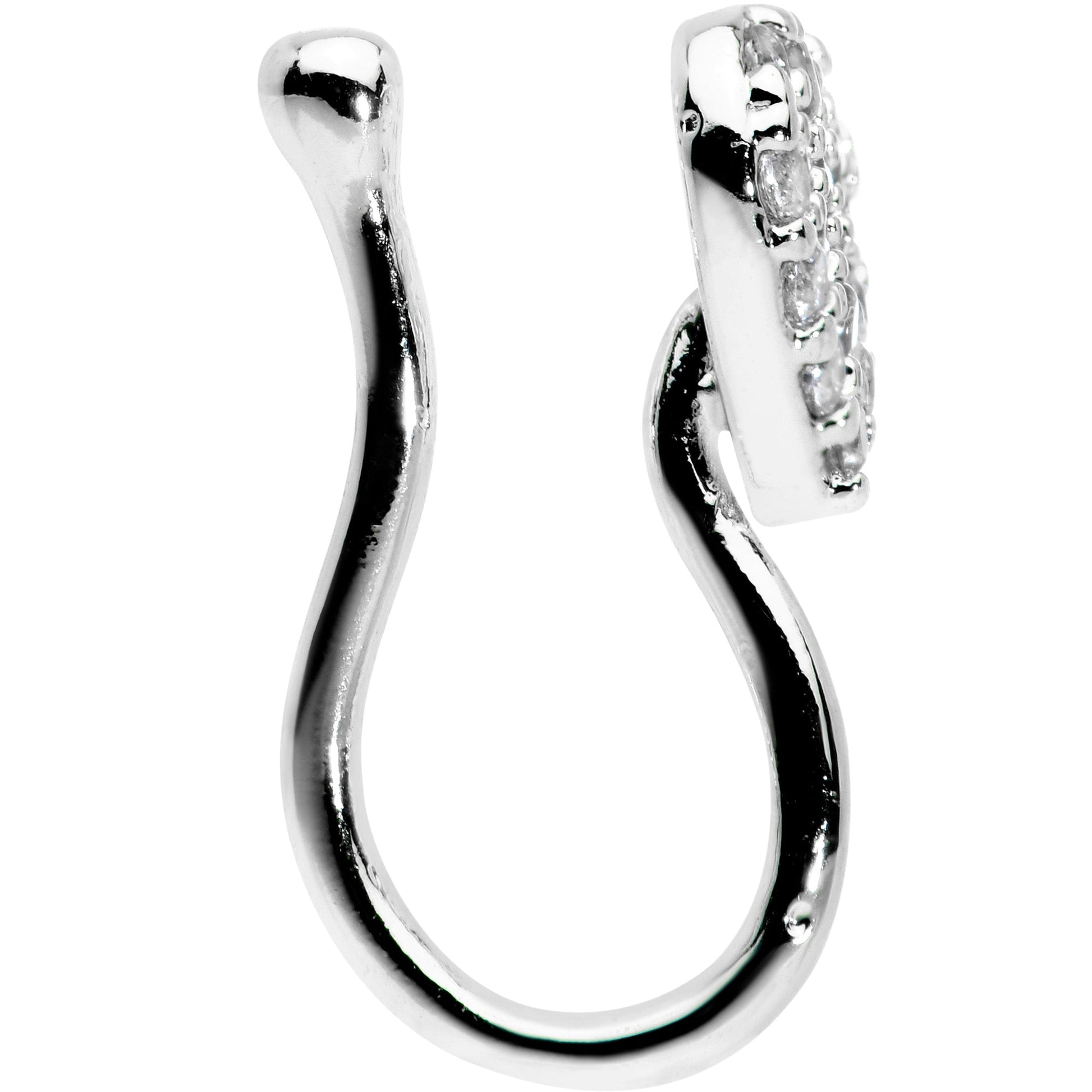 Clear CZ Gem Paved Heart Clip On Fake Nose Ring