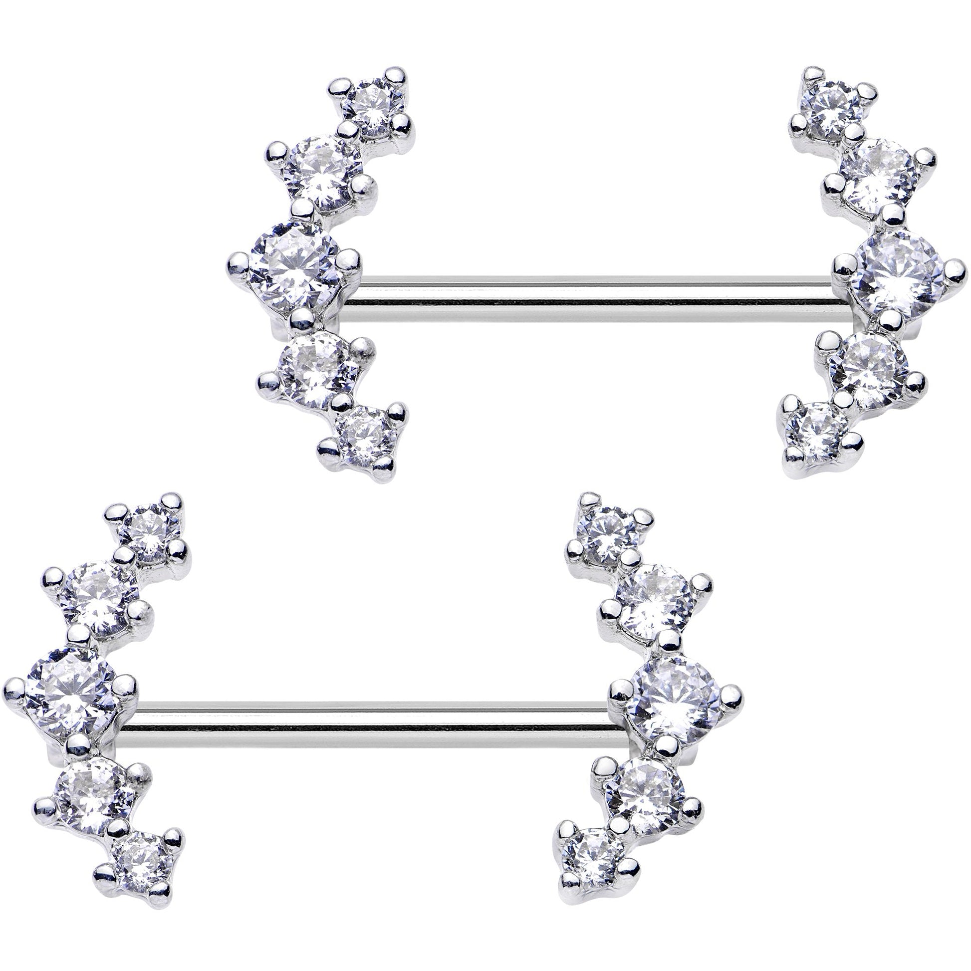 Clear CZ Gem Quintuple Cascade Barbell Nipple Ring Set