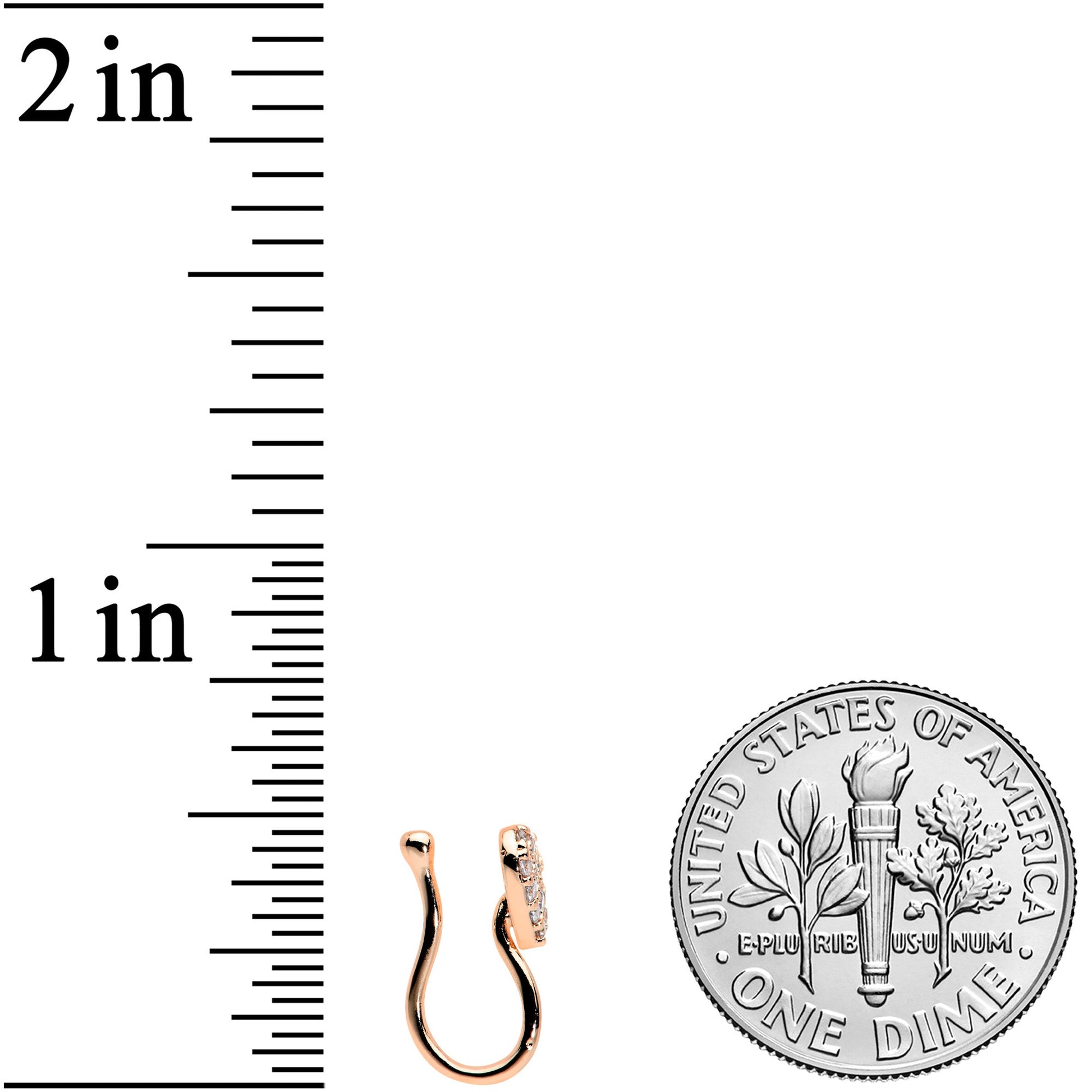Clear CZ Gem Rose Gold Tone Paved Heart Clip On Fake Nose Ring
