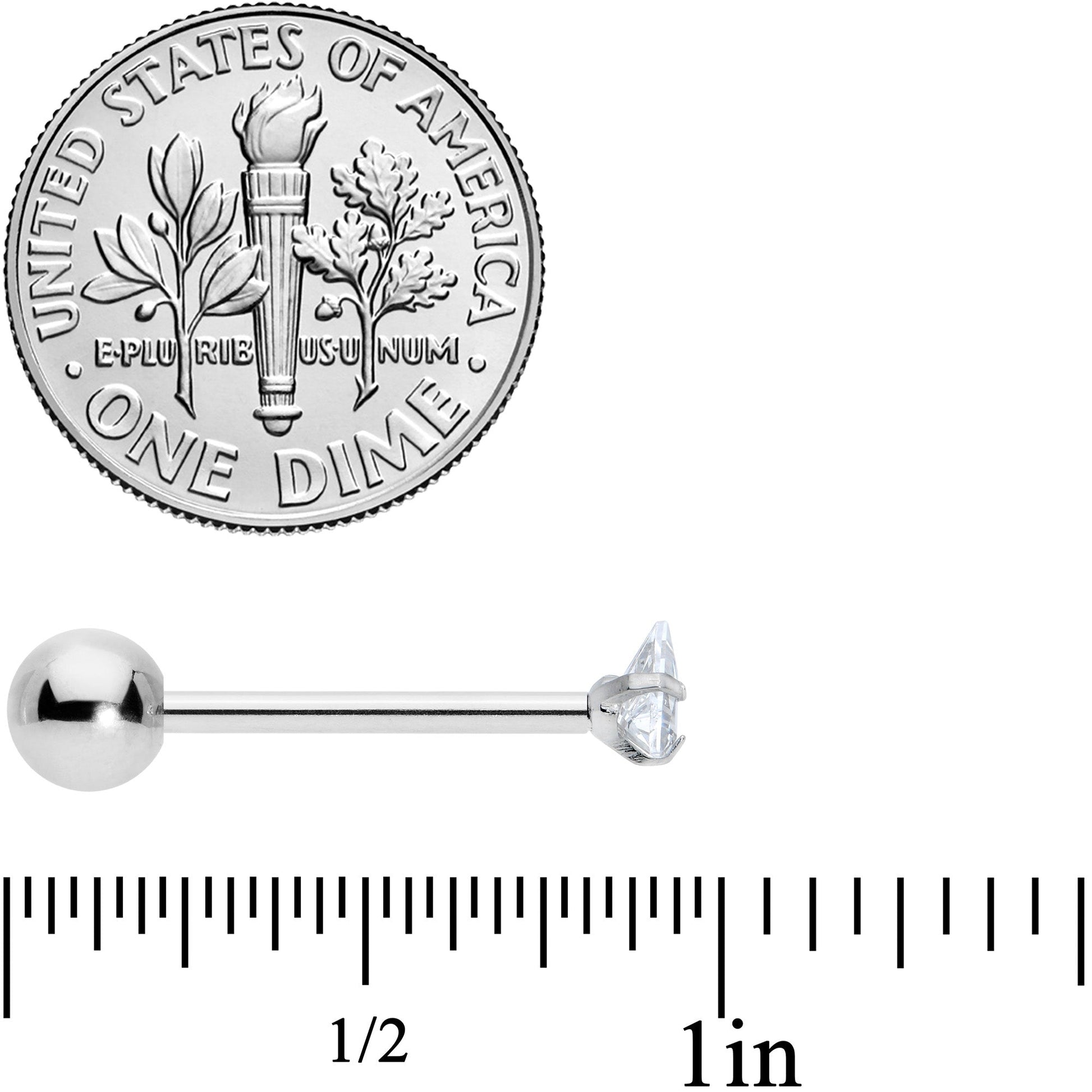 Find style in the simplest places - like on this 14 gauge tongue piercing ring! It's made with a 5/8" durable 316L surgical grade stainless steel straight barbell with a 5mm bottom ball end. The top end features a triangular shaped clear cubic zirconia gem. The overall look is understated and elegant for a more mature look. One look at this elegant tongue barbell and you'll know you've found all the style you could ever want!Specifications