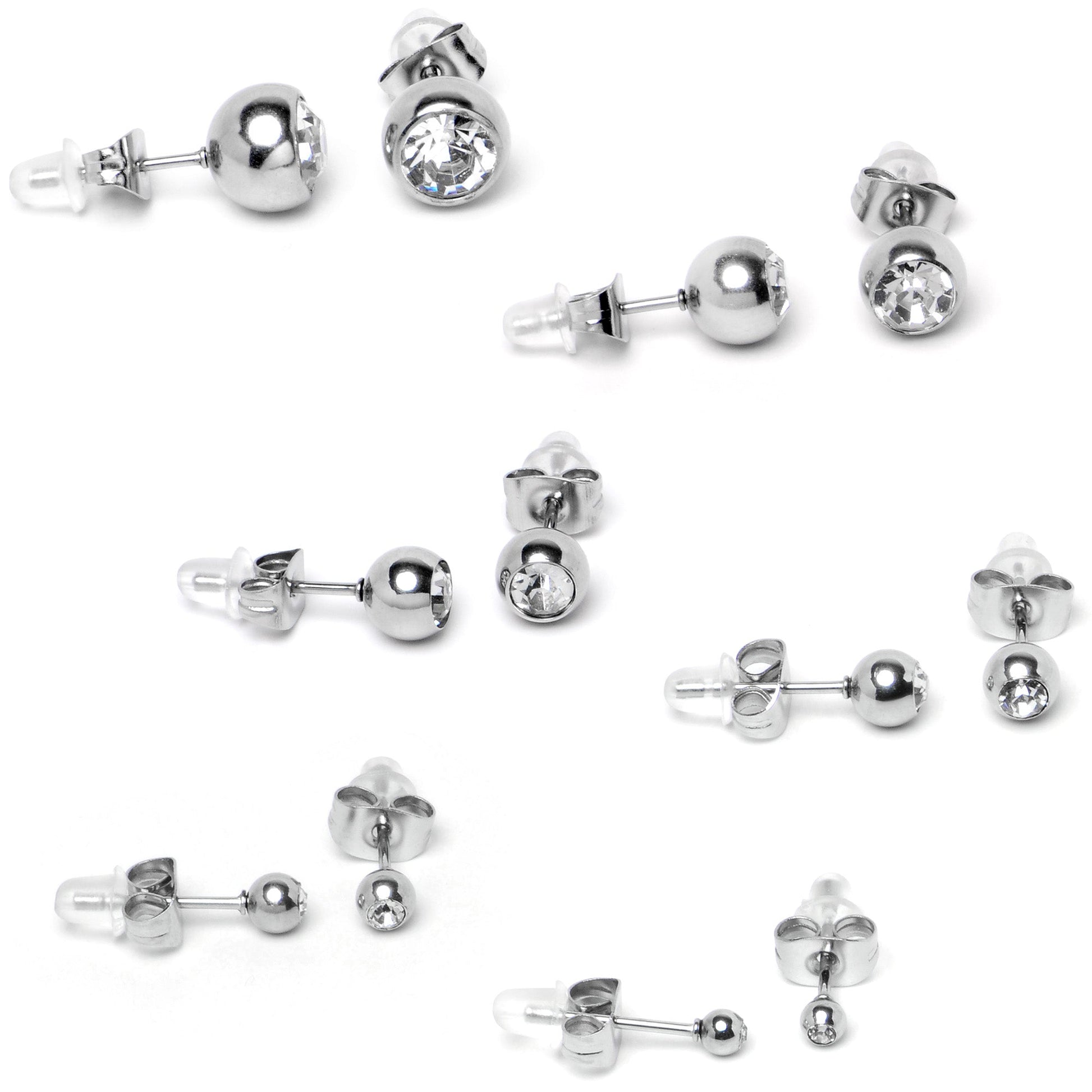Clear Gem 3mm to 8mm Ball End Stud Earrings Set of 6