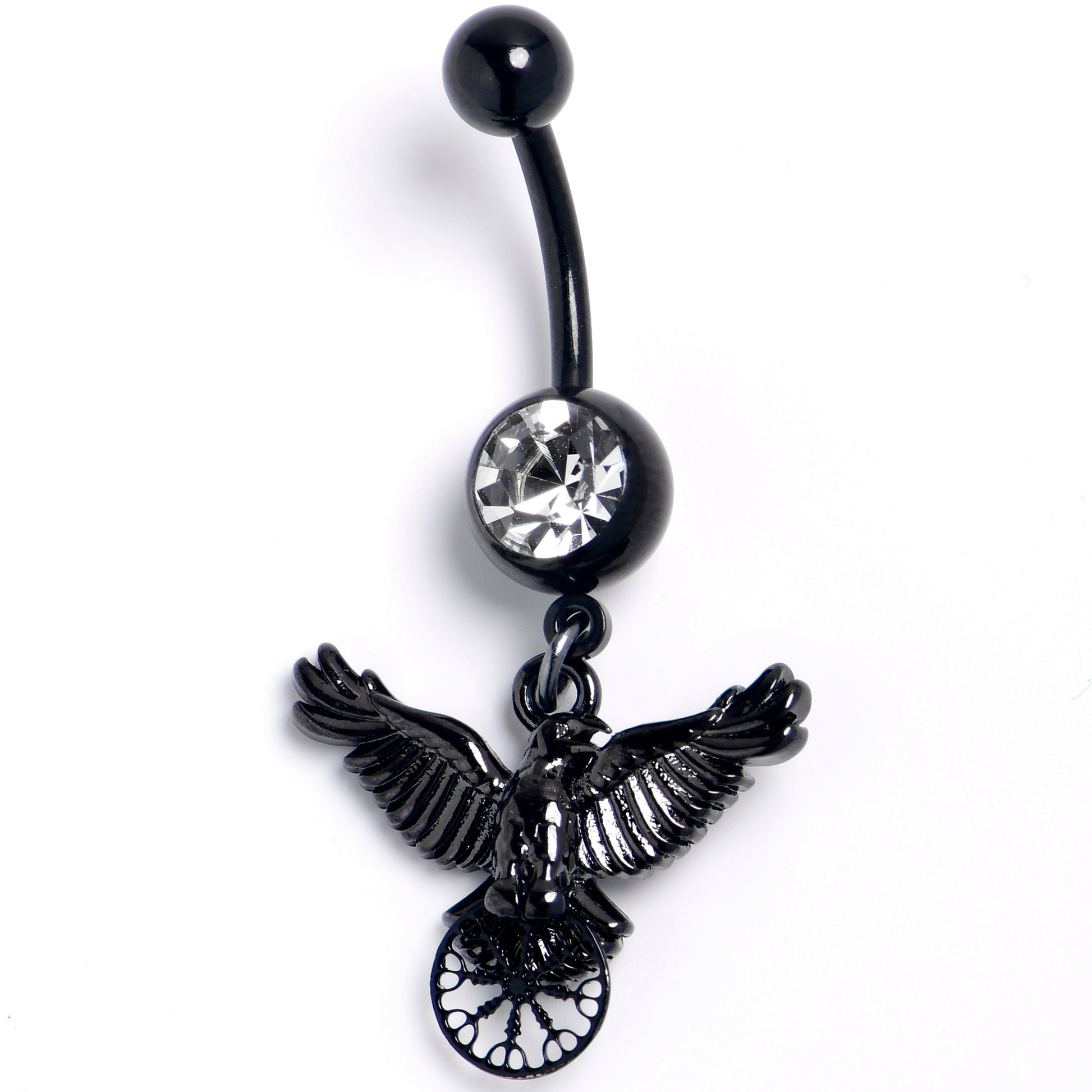 Clear Gem Black Raven Bird Wheel Dangle Belly Ring