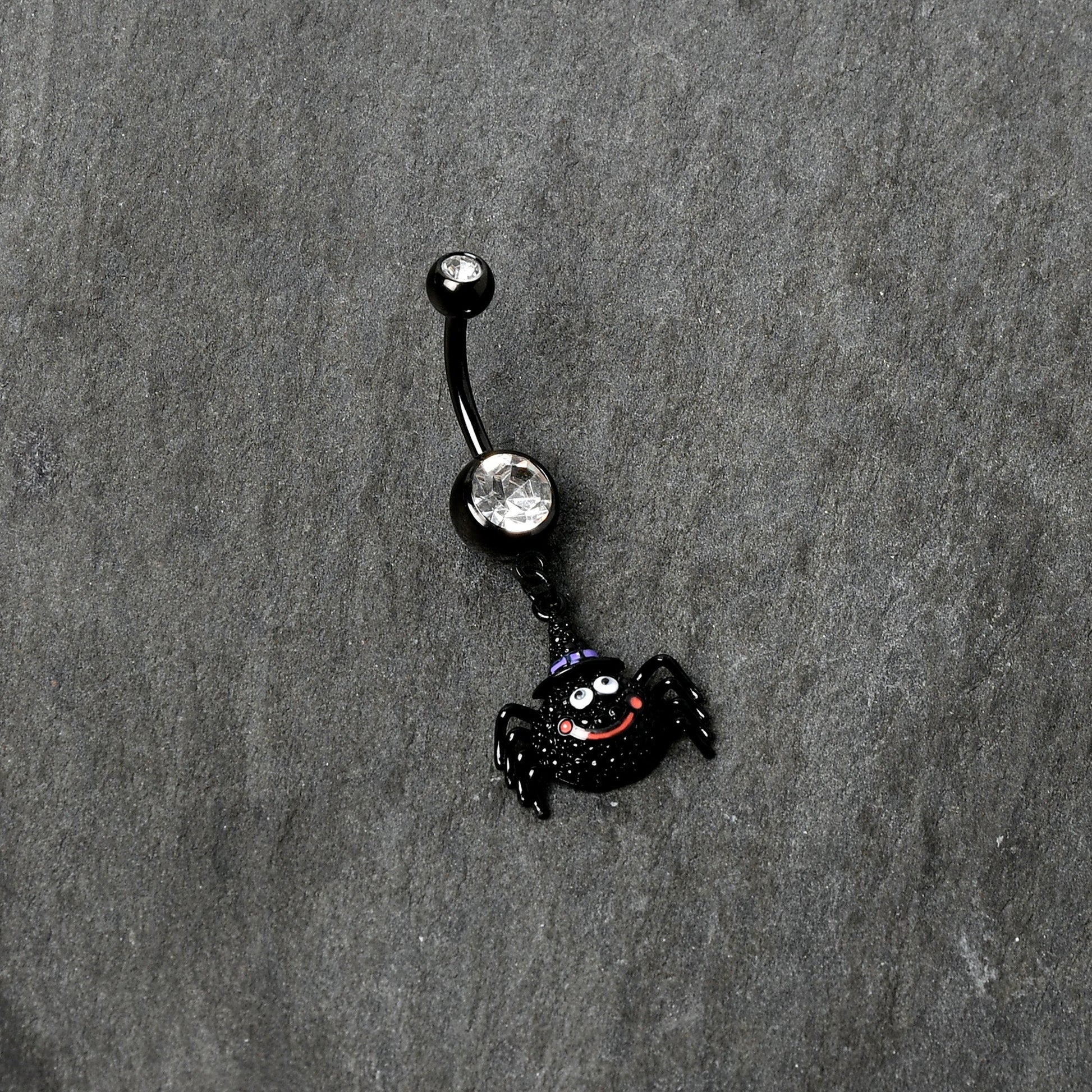Clear Gem Black Smiling Spider Witch Halloween Dangle Belly Ring
