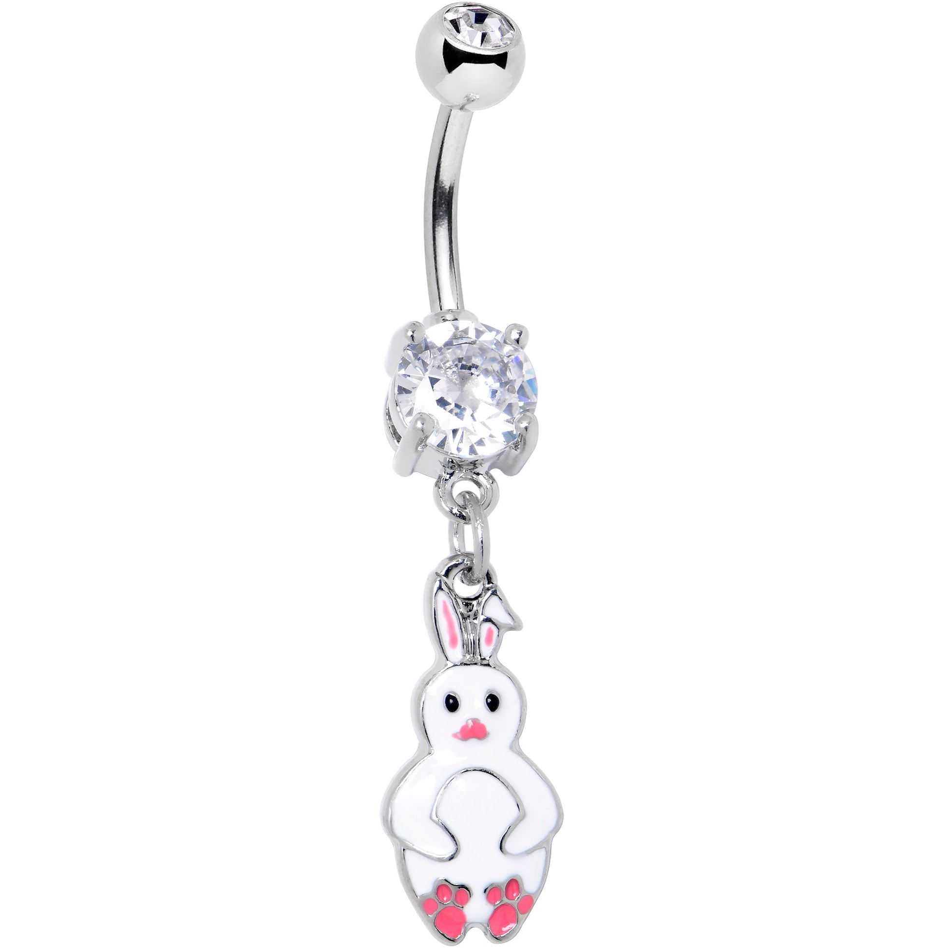 Clear Gem Bunny White Rabbit Dangle Belly Ring