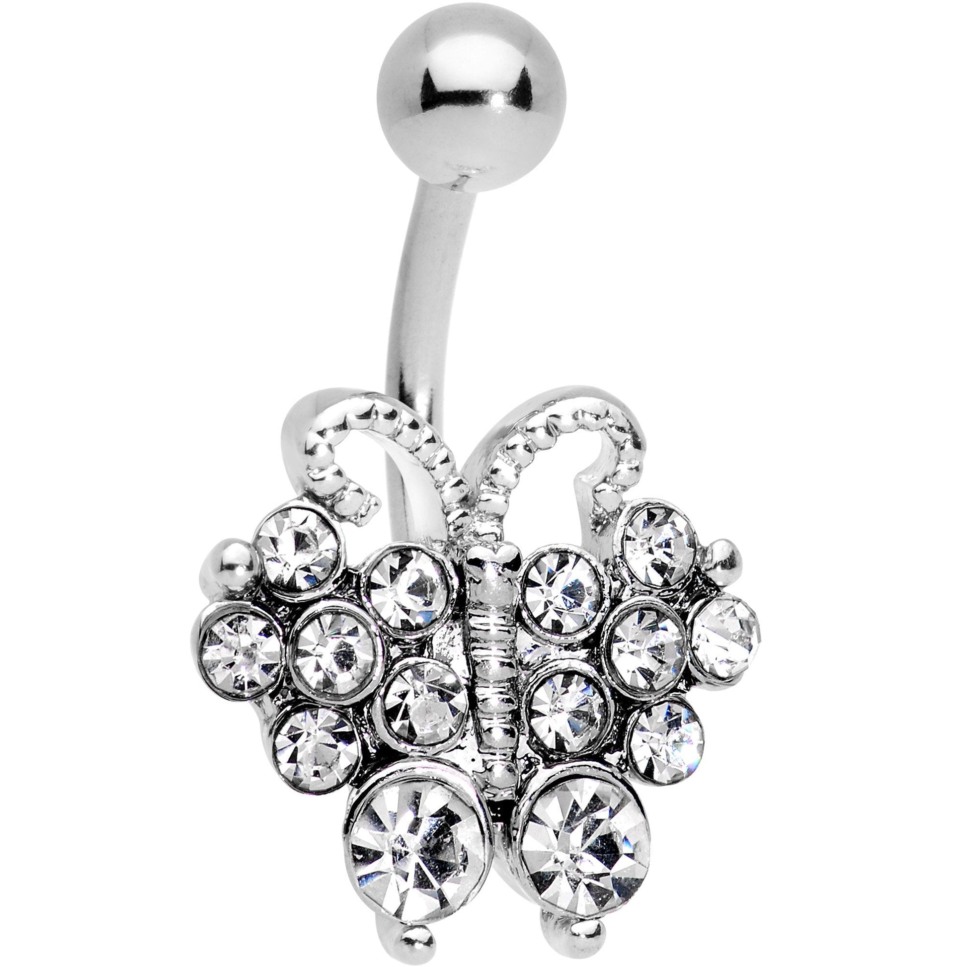 If you love the sight of a butterfly on the wing in spring then you will love this pretty 14 gauge belly button ring. Made with a 7/16" durable 316L surgical grade stainless steel curved barbell, this navel ring features a buttefly bottom charm formed with clear gems for eye-catching style that you will love to wear.