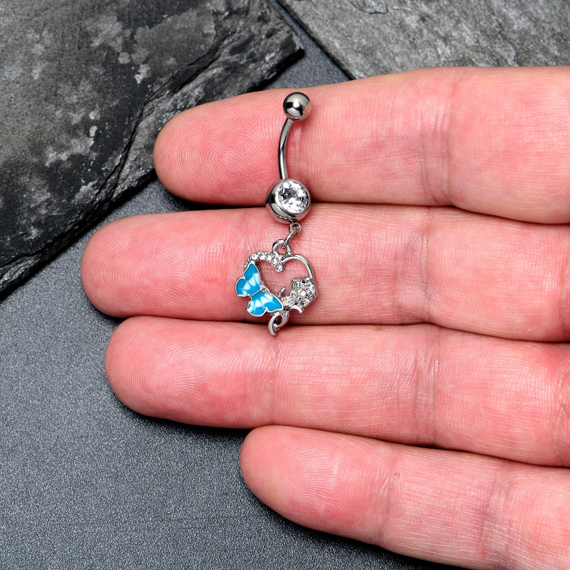 Clear Gem Butterfly Rose Flower Blue Dangle Belly Ring