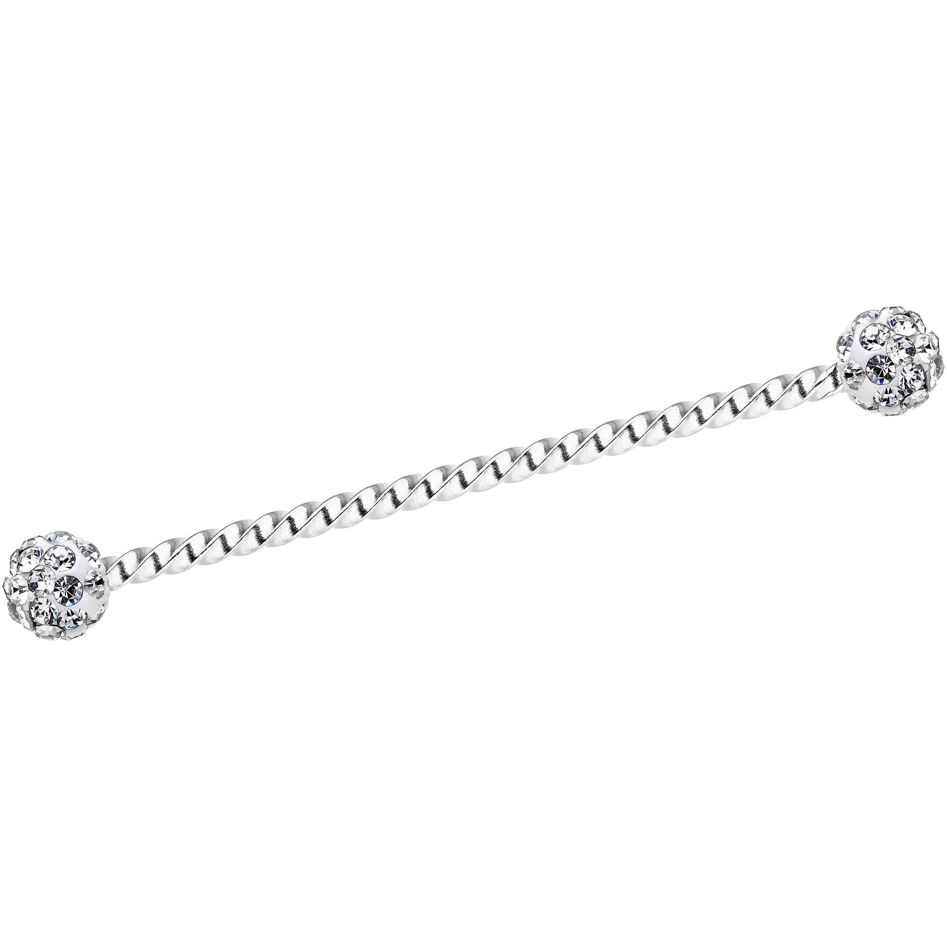 If you love simple style with a fashion twist then you will love this fun 14 gauge fashion cartilage earring. Made with a 1 1/2" durable 316L surgical grade stainless steel straight barbell with a twist pattern on the barbell, this industrial jewelry features clear gem cluster balls on each end.