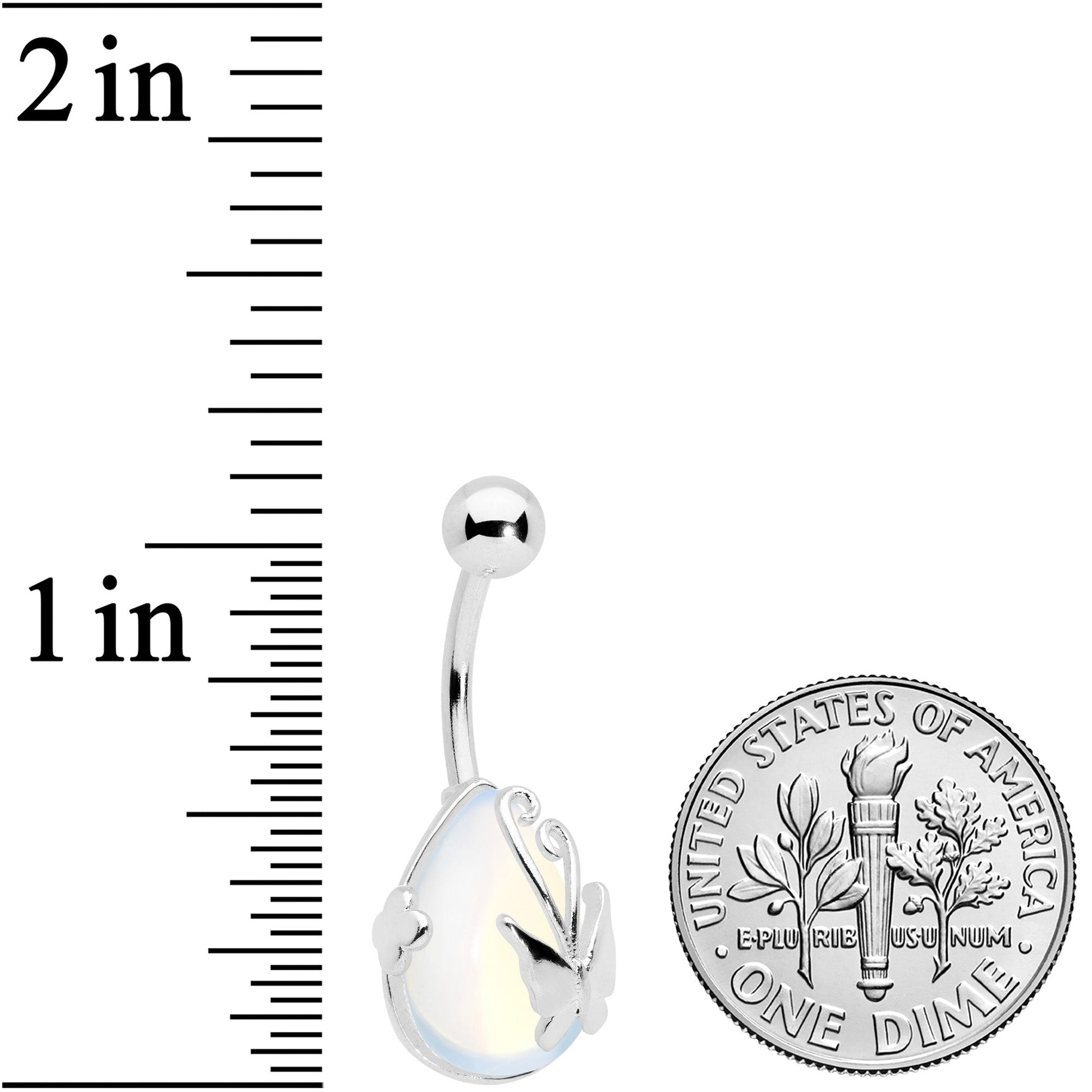 Wrap yourself in style with this 14 gauge navel ring! It's made with 3/8" durable 316L surgical grade stainless steel curved barbell with a 5mm top ball end. The bottom end features a drop shaped clear gem charm. The charm features a matching butterfly embellishment that appears to wrapping its wings around it! Wrap your piercing in wings of glamour with this elegant butterfly belly button belly ring.Specifications