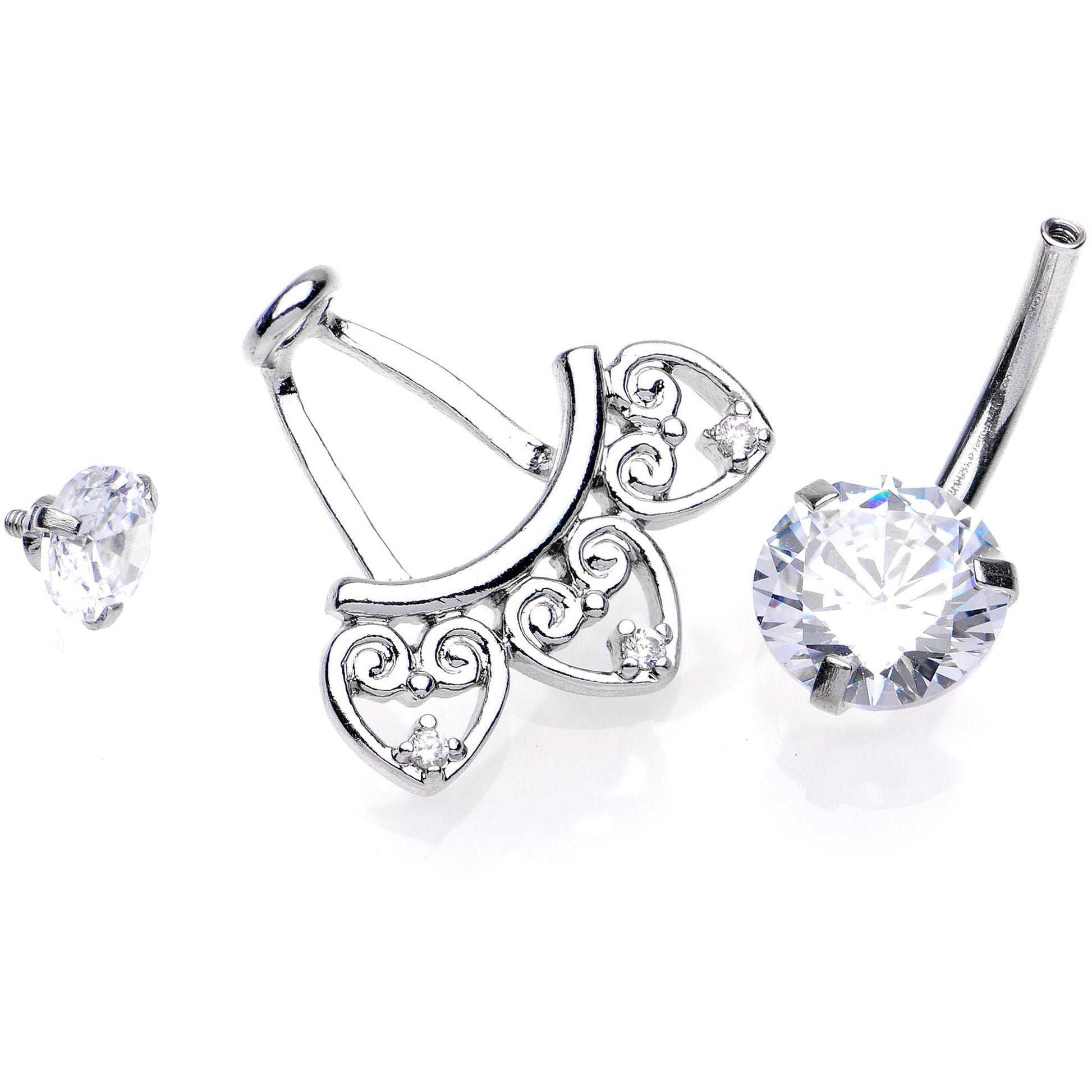 Clear Gem Enchanted Hearts Dangle Belly Ring