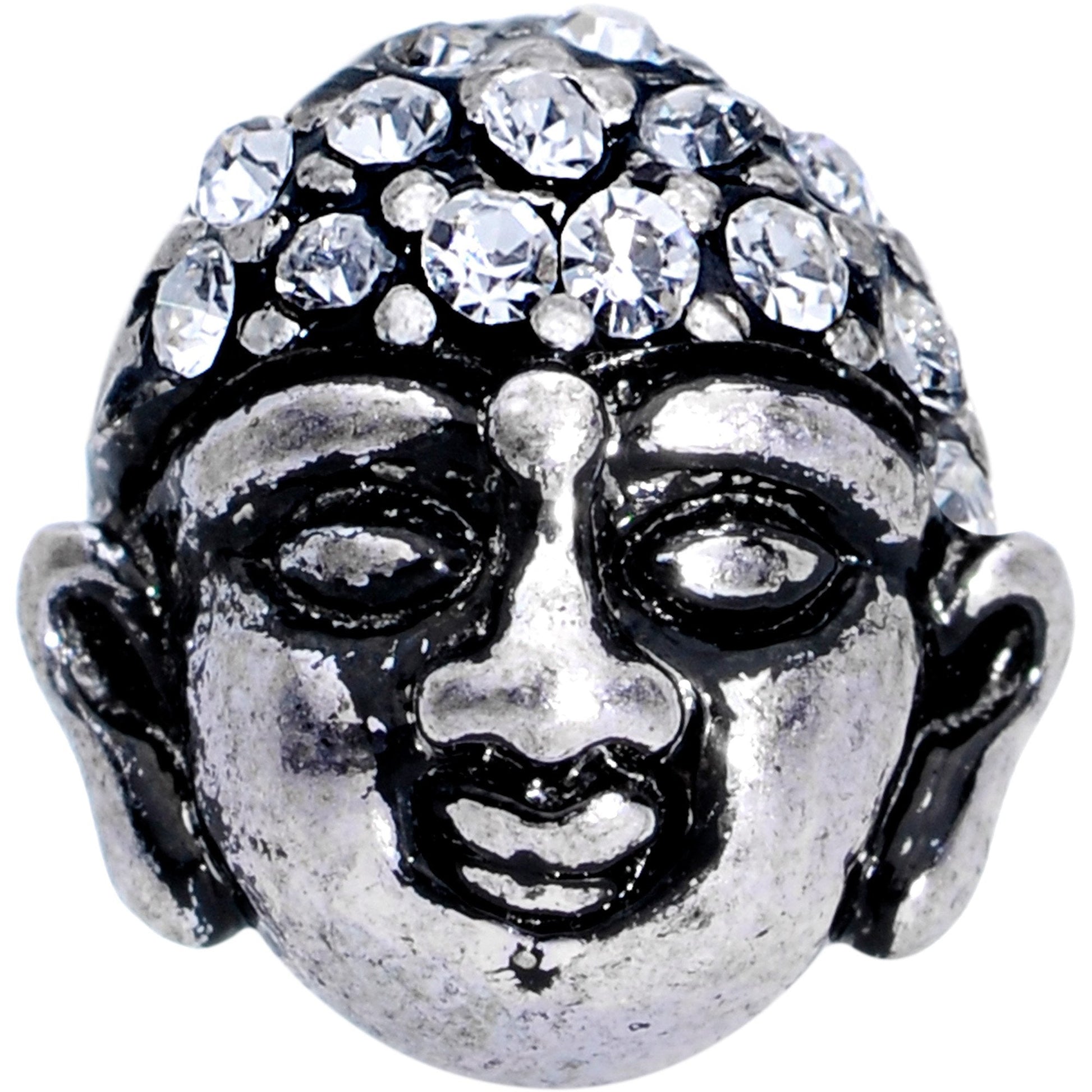This Buddha's mind is so expansive, you can see its universal knowledge! The expanding brain Buddha charm on this 14 gauge cartilage tragus stud piercing is encrusted with a universe of clear mini gems. Mounted on a 1/4" straight barbell made with durable 316L surgical grade stainless steel, this Buddha jewelry is your next step to finding inner peace.