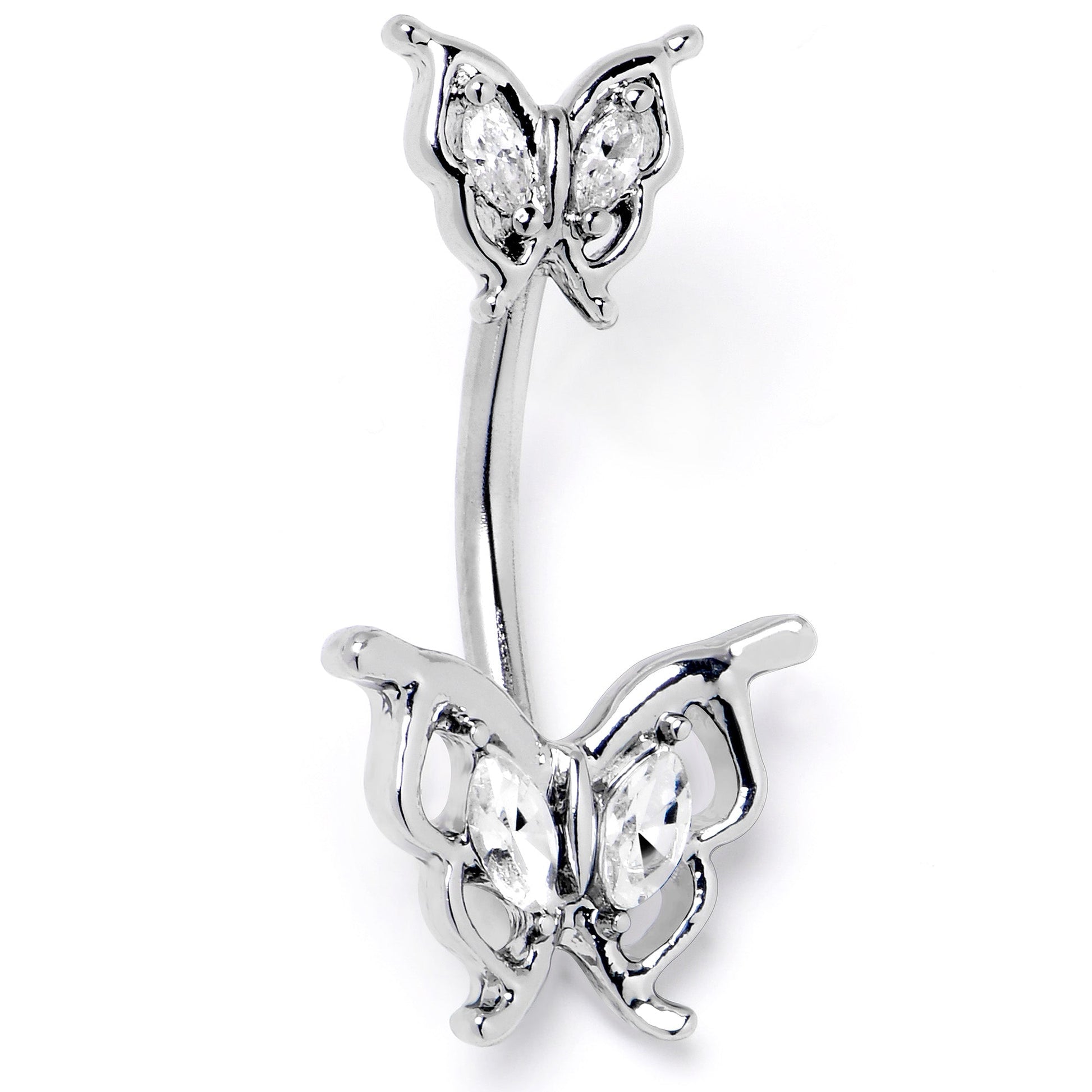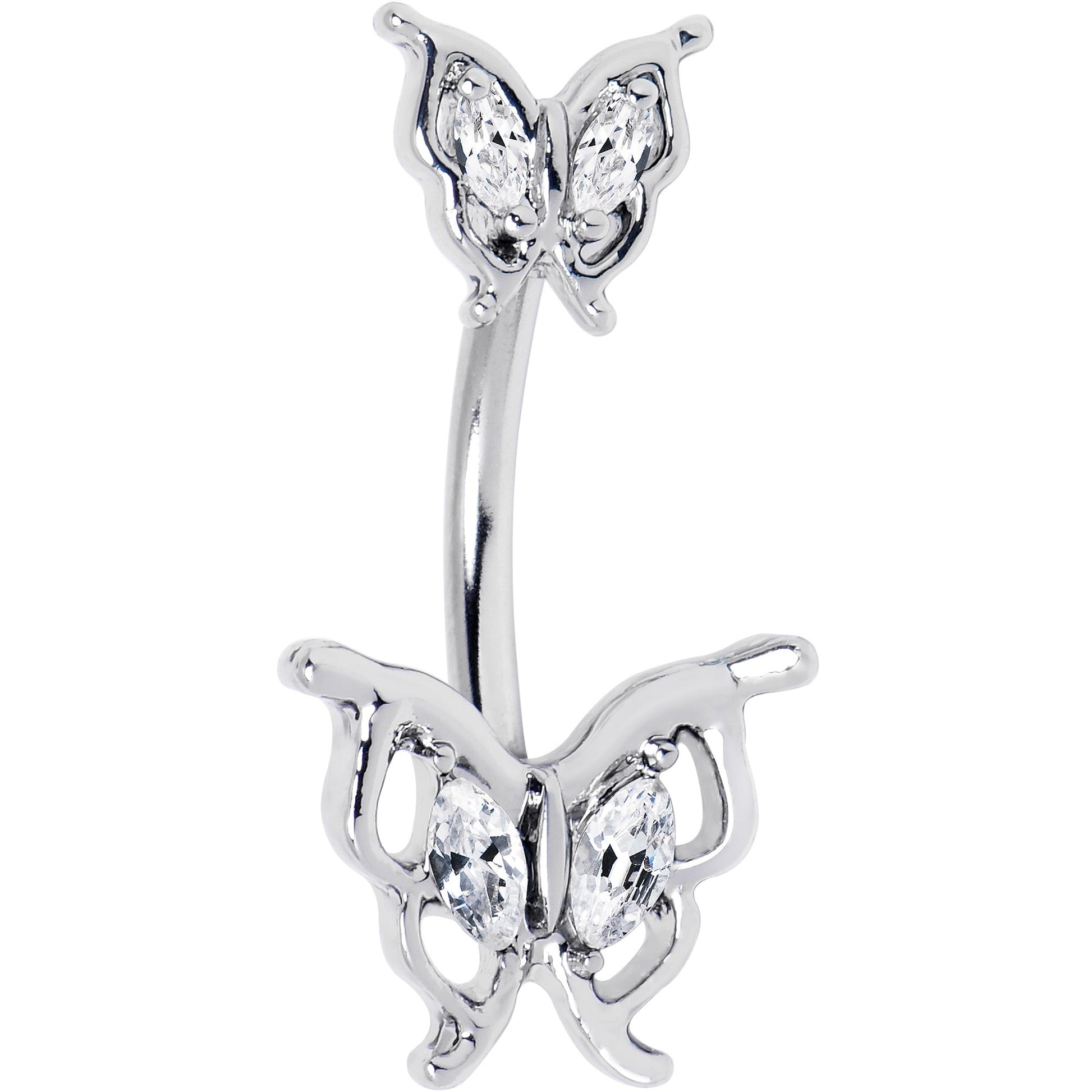 Clear Gem Fancy Fab Butterfly Double Mount Belly Ring