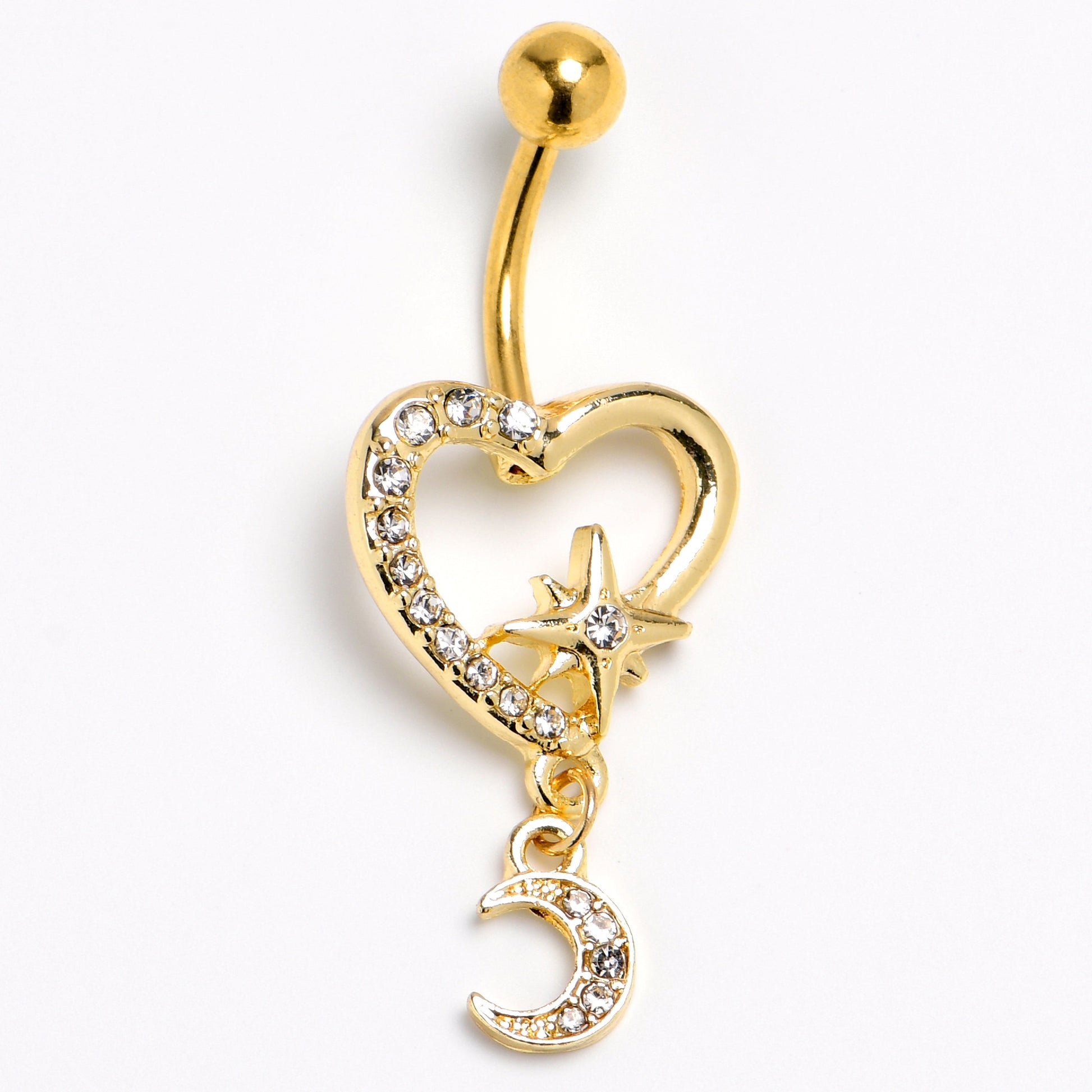 Clear Gem Gold Tone Heart Moon Dangle Belly Ring