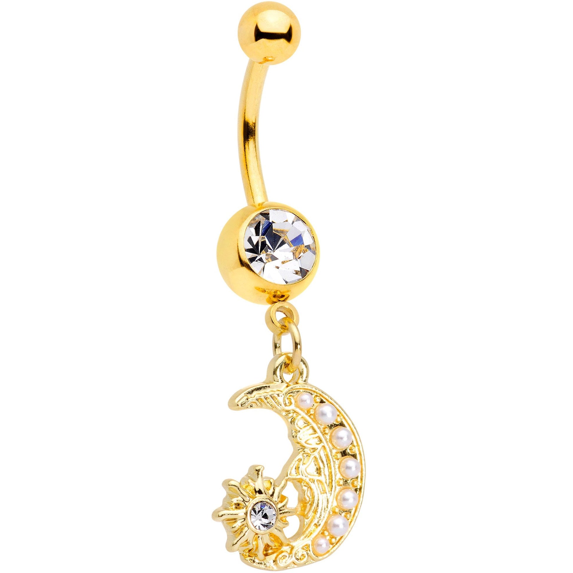 Clear Gem Gold Tone Peaceful Night Star Moon Dangle Belly Ring