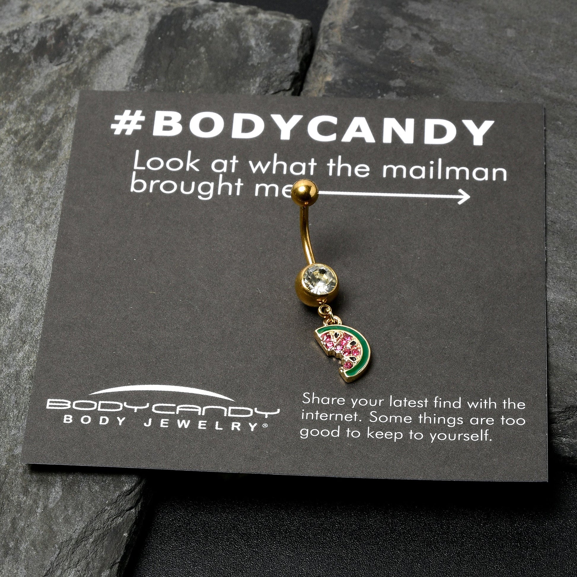 Clear Gem Gold Tone Watermelon Bite Dangle Belly Ring