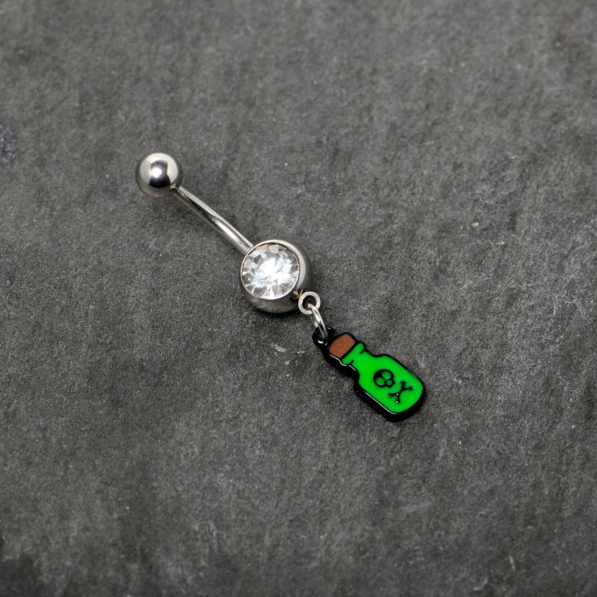Clear Gem Green Poison Bottle Glow in the Dark Dangle Belly Ring