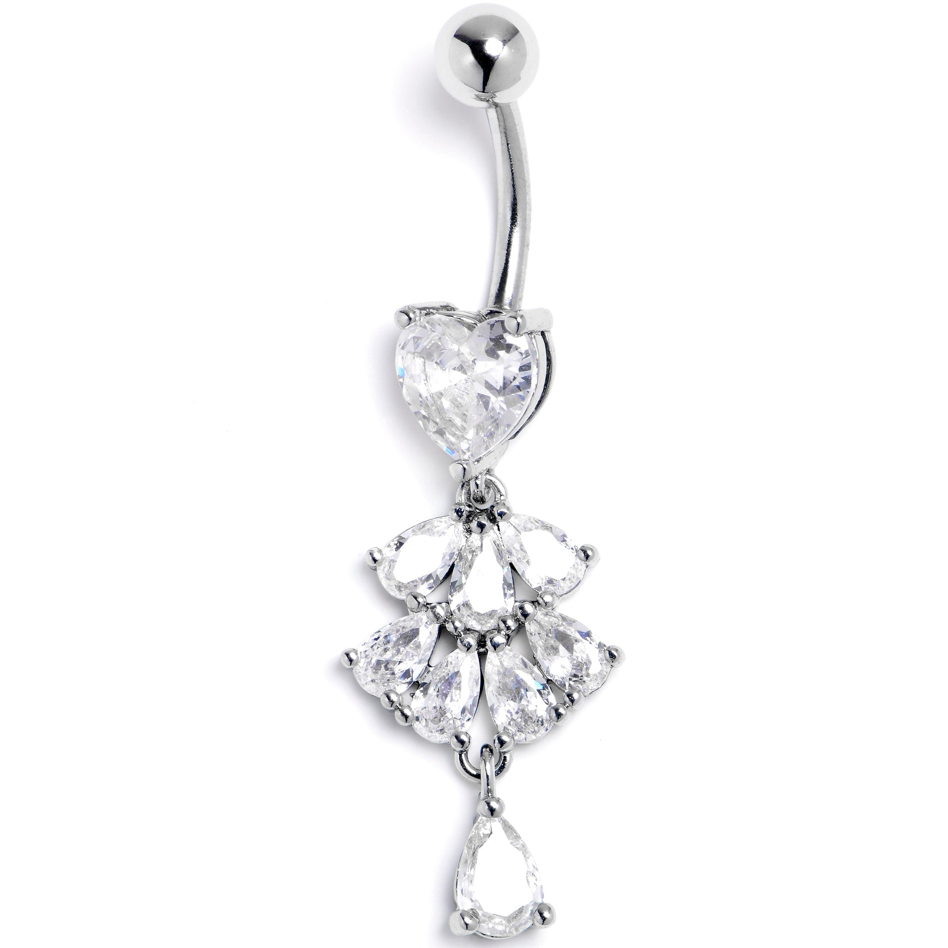 Clear Gem Heart Style Cascade Dangle Belly Ring