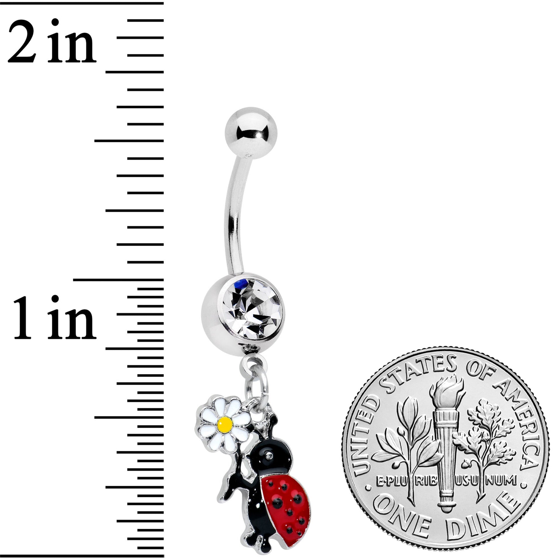 Clear Gem Ladybug Daisy Flower Dangle Belly Ring