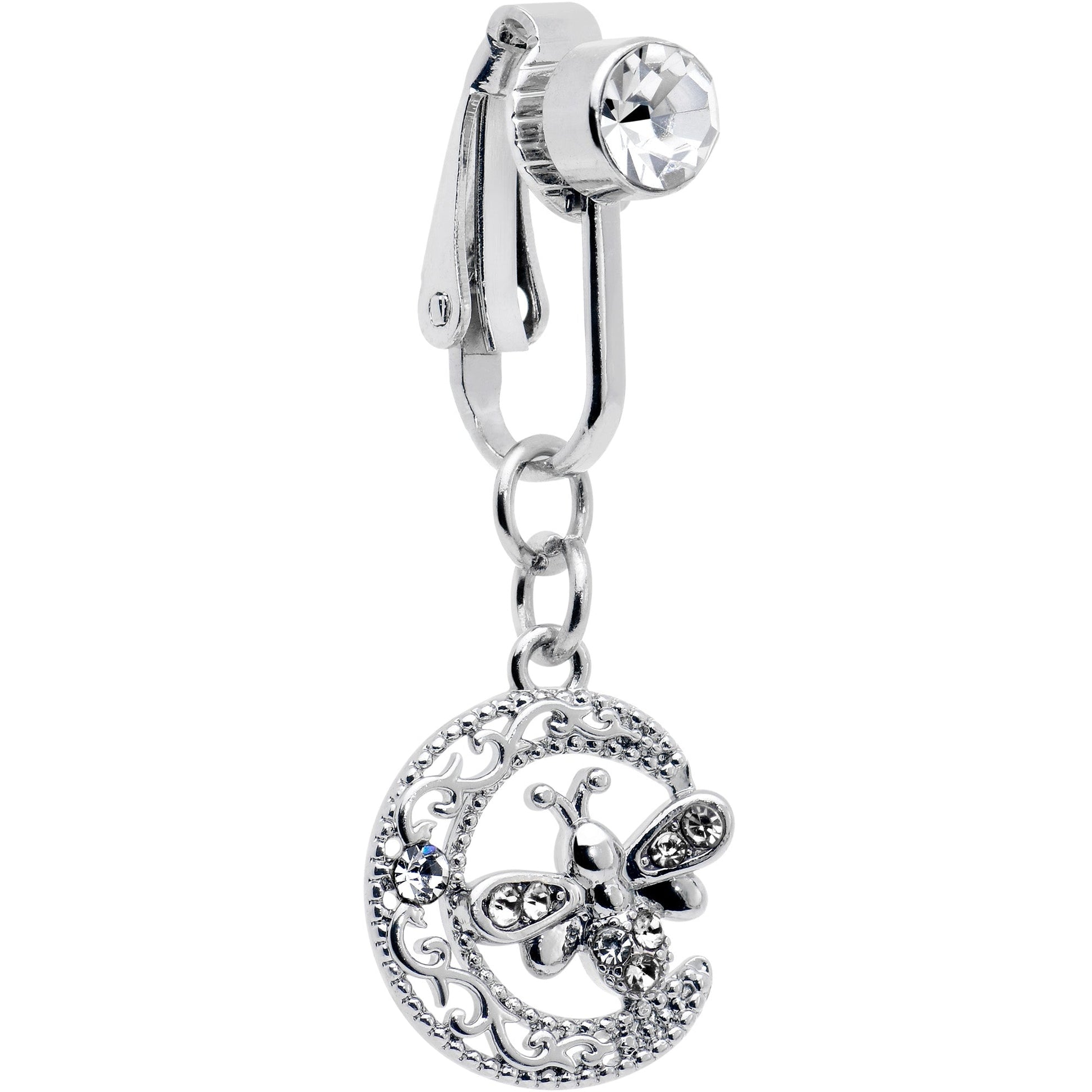 Clear Gem Lunar Dragonfly Fake Clip On Belly Ring