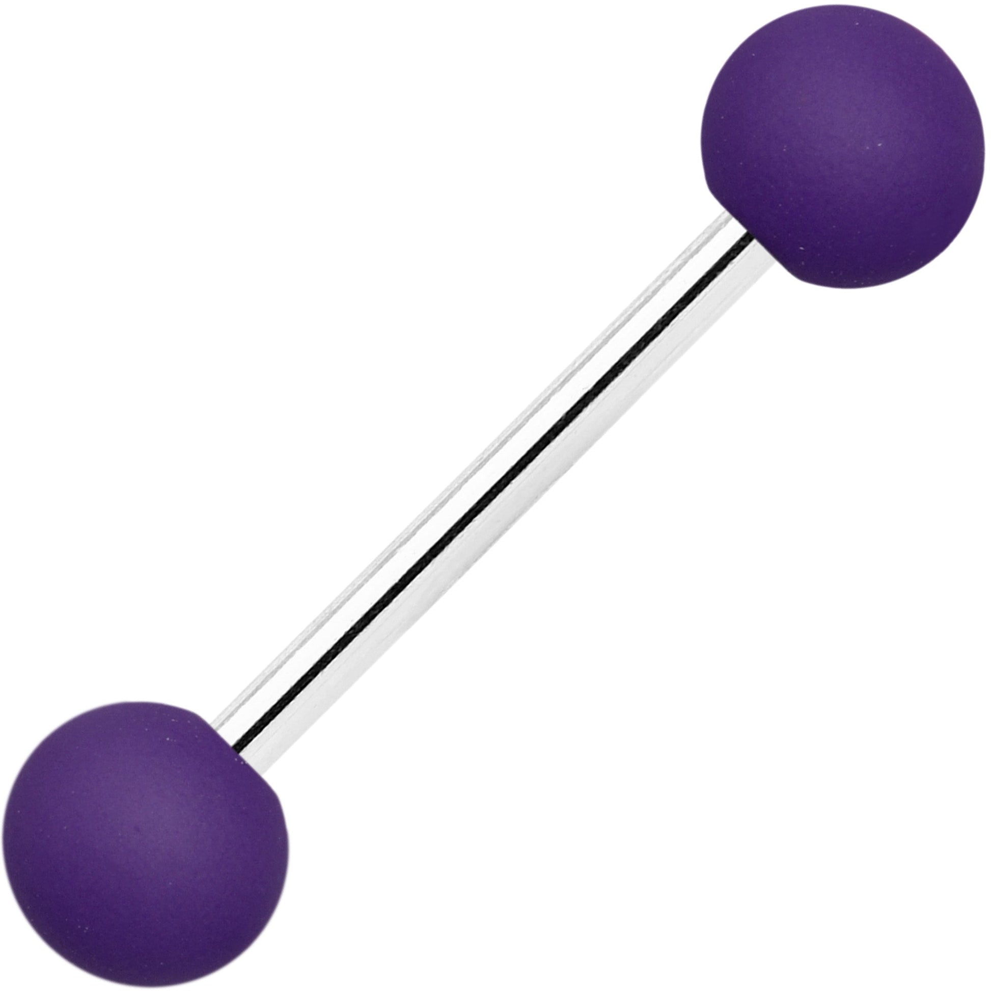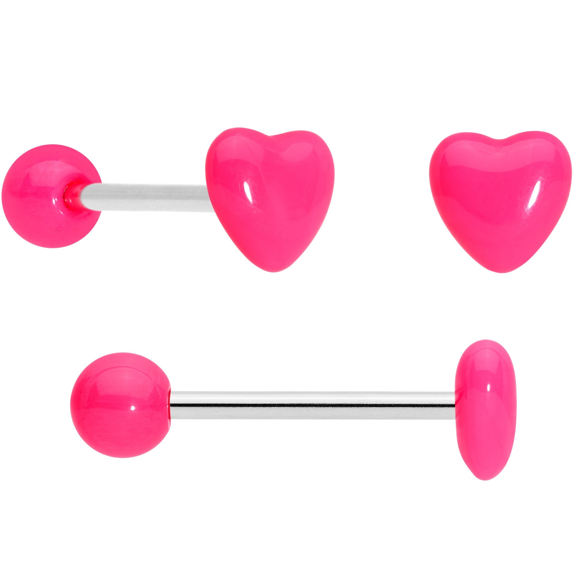 Let your tongue piercing reflect your every mood with this set of 14 gauge tongue rings! Two are made with 5/8" durable 316L surgical grade stainless steel straight barbells. One features 5mm matte purple ball ends for a simple, subtle appearance. The second one features a 5mm pink bottom ball end and a pink heart top end for a whimsical appearance. The third one is made with a 5/8" rainbow electroplate over 316L surgical grade stainless steel straight barbell. It has 5mm ball ends, with the top ball end set with a large clear gem. The fourth one is made with a 5/8" pink flexible Bioplast barbell. It features 5mm pink acrylic ball ends embellished with multicolor stripes. Get a look for every occasion with this stylish set of tongue jewelry! Sold as a set of four.Specifications