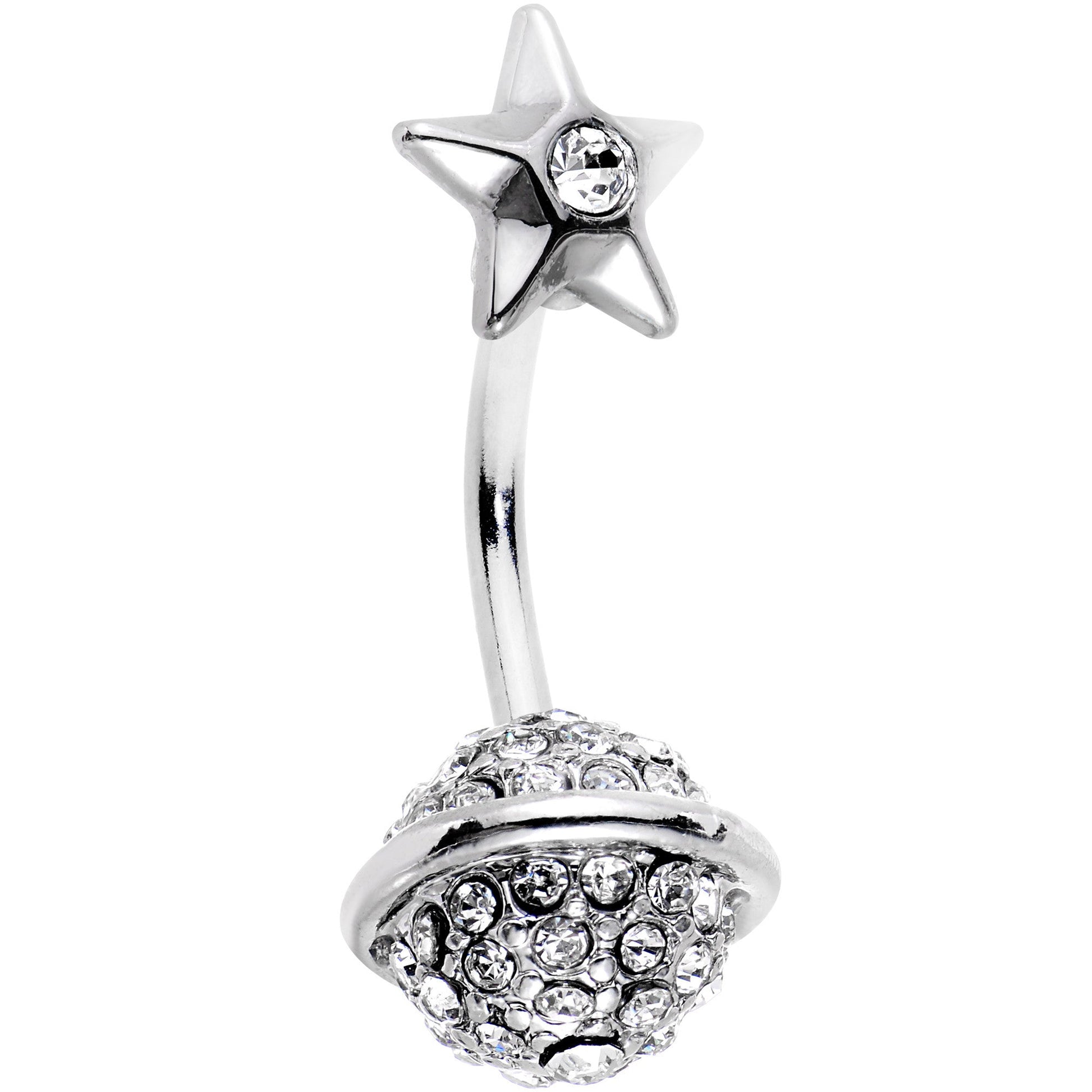 Clear Gem Rings of Saturn Planet and Star Double Mount Belly Ring