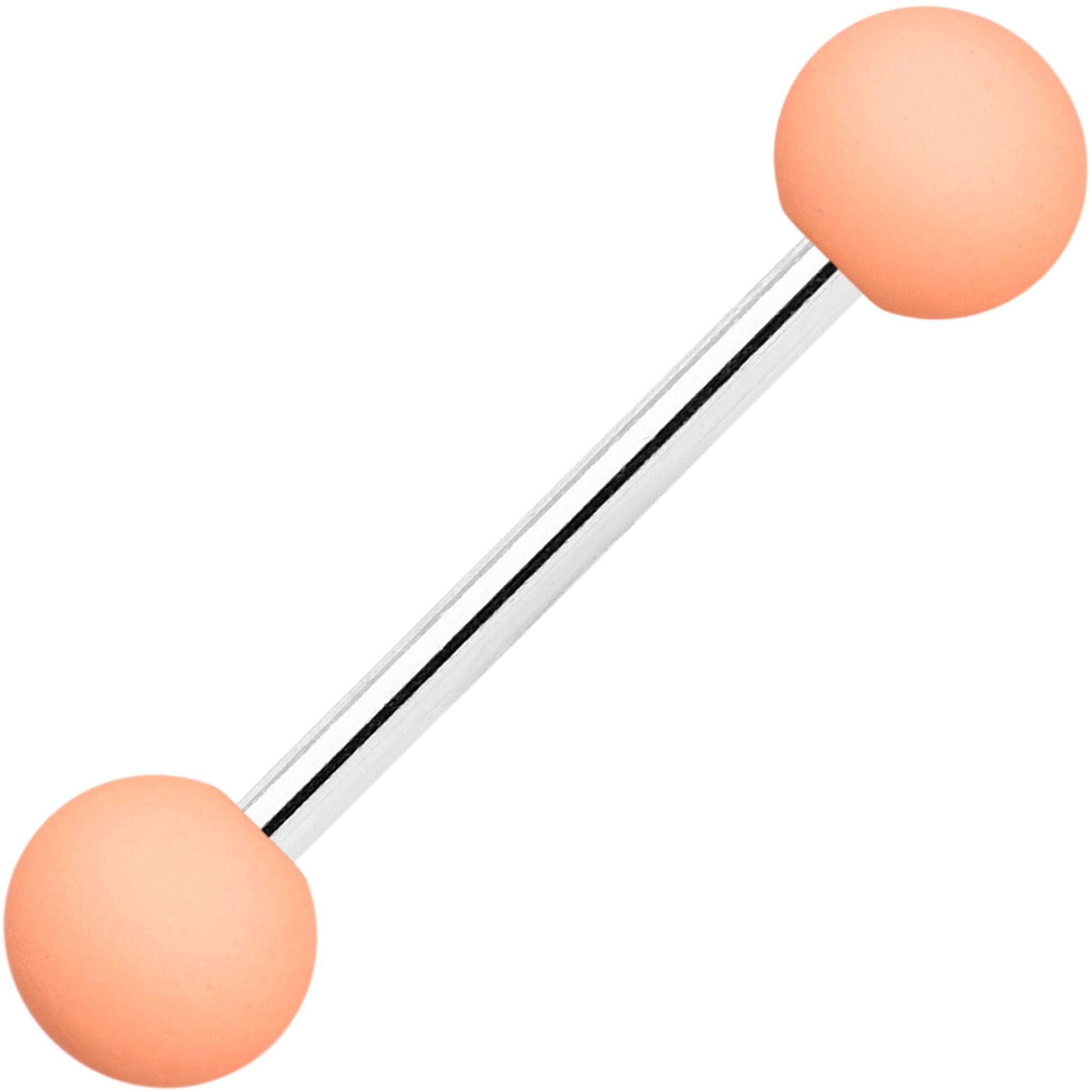 Let your tongue piercing reflect your every mood with this set of 14 gauge tongue rings! Three are made with 5/8" durable 316L surgical grade stainless steel straight barbells. One features 5mm matte peach color ball ends for a simple, subtle appearance. The second features 5mm pink ball ends, with pink stripes for some colorful style. The third one features a 5mm pink bottom ball end and a pink heart top end, both set with glitter for a whimsical appearance. The fourth one is made with a 5/8" rose gold tone electroplate over 316L surgical grade stainless steel straight barbell. It has 5mm ball ends, with the top ball end set with a large clear gem. Get a look for every occasion with this stylish set of tongue jewelry! Sold as a set of four.Specifications