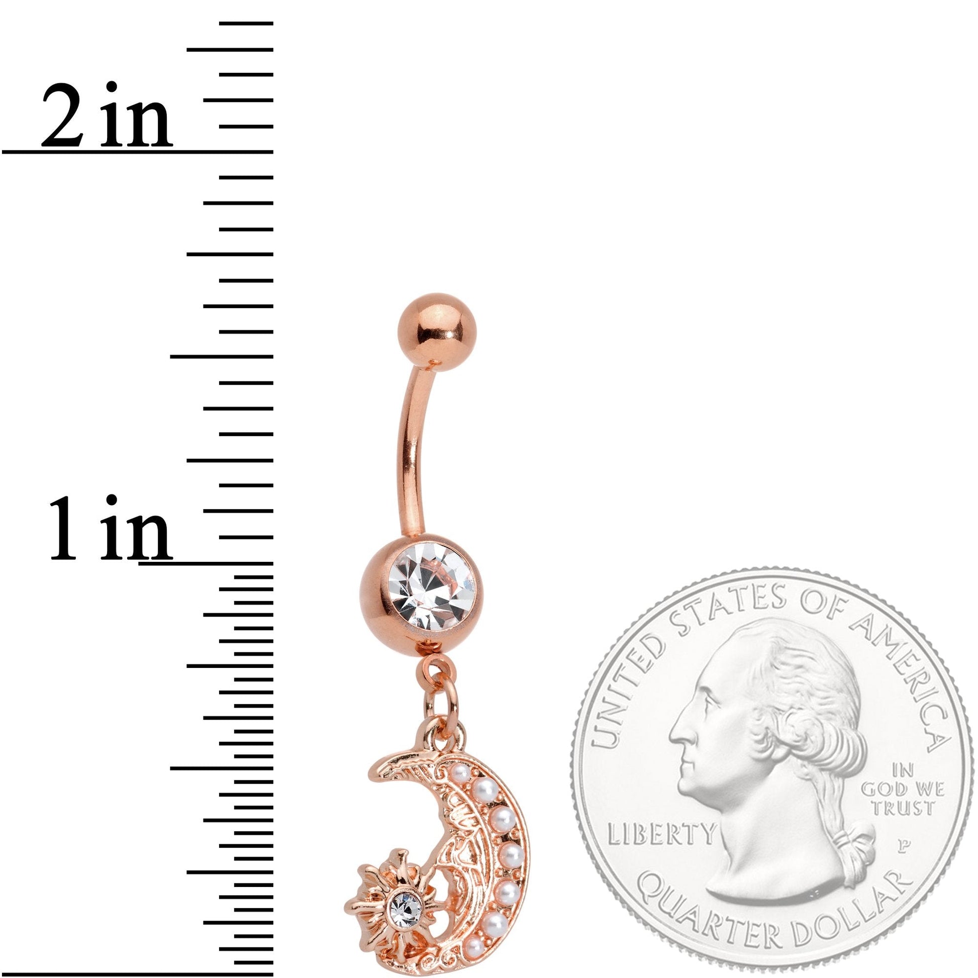Get lost looking at the stars when you wear this pretty 14 gauge rose gold tone belly button ring. Made with a 3/8" rose gold tone plated over 316L surgical grade stainless steel curved barbell, this navel piercing features a shooting star dangle charm with clear gems.Specifications