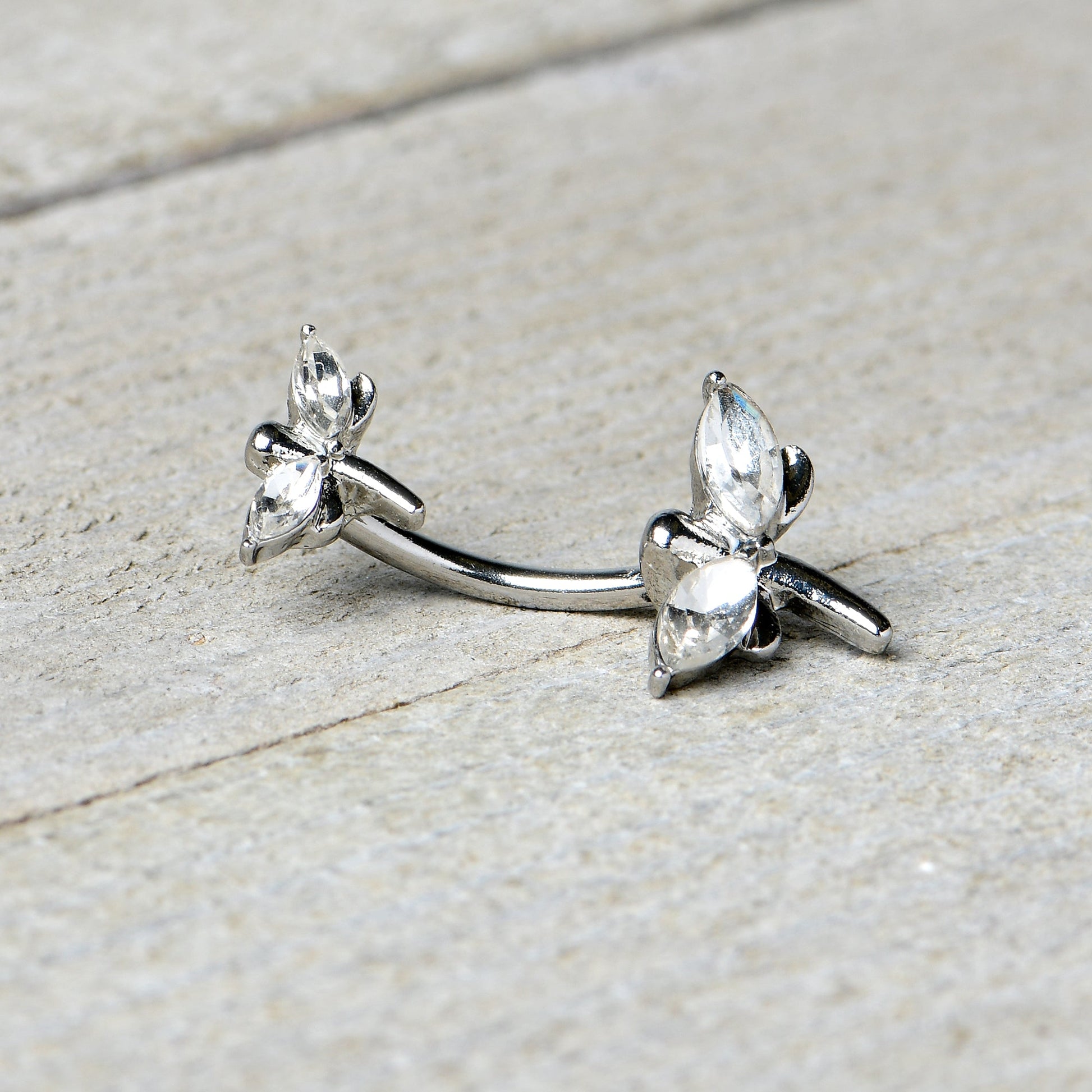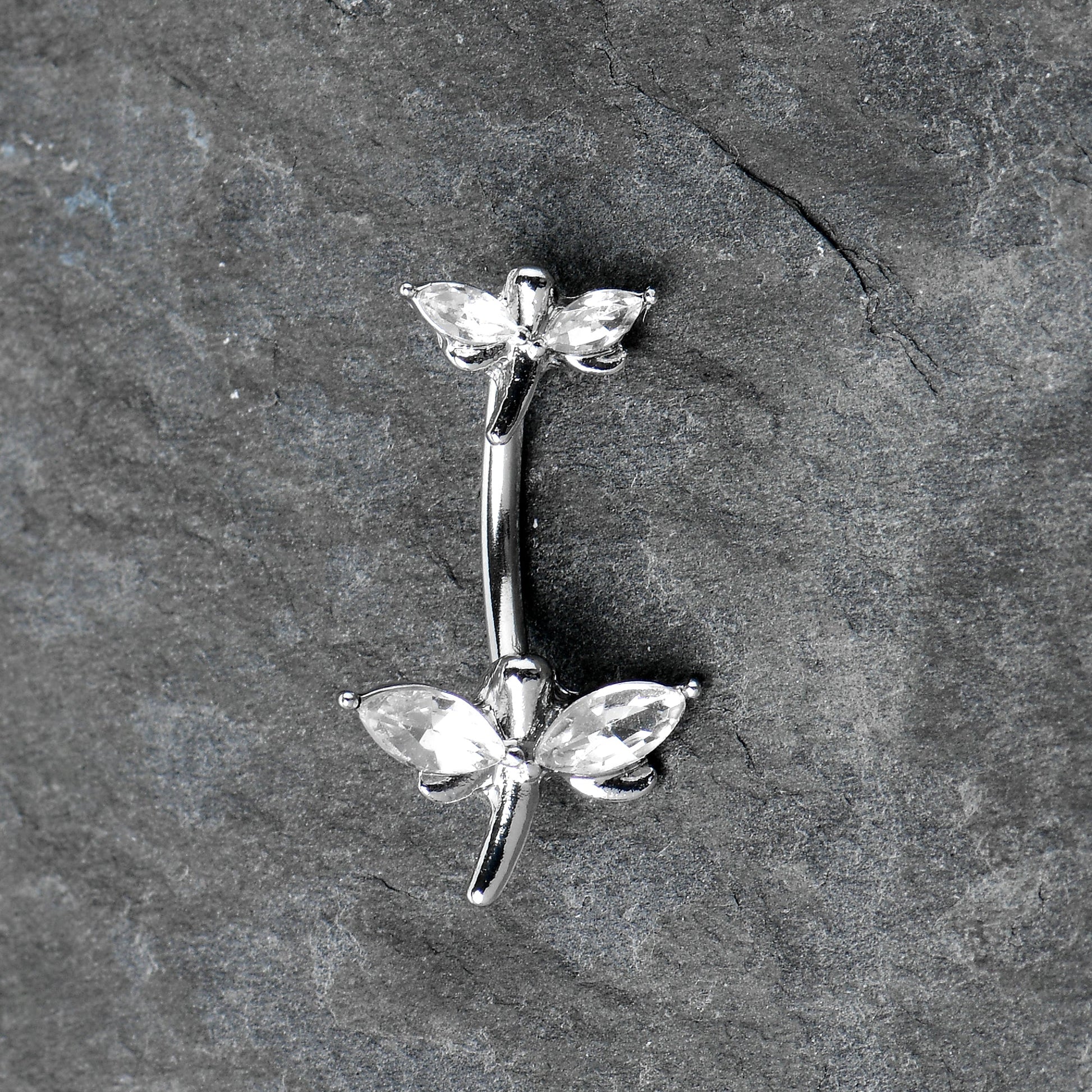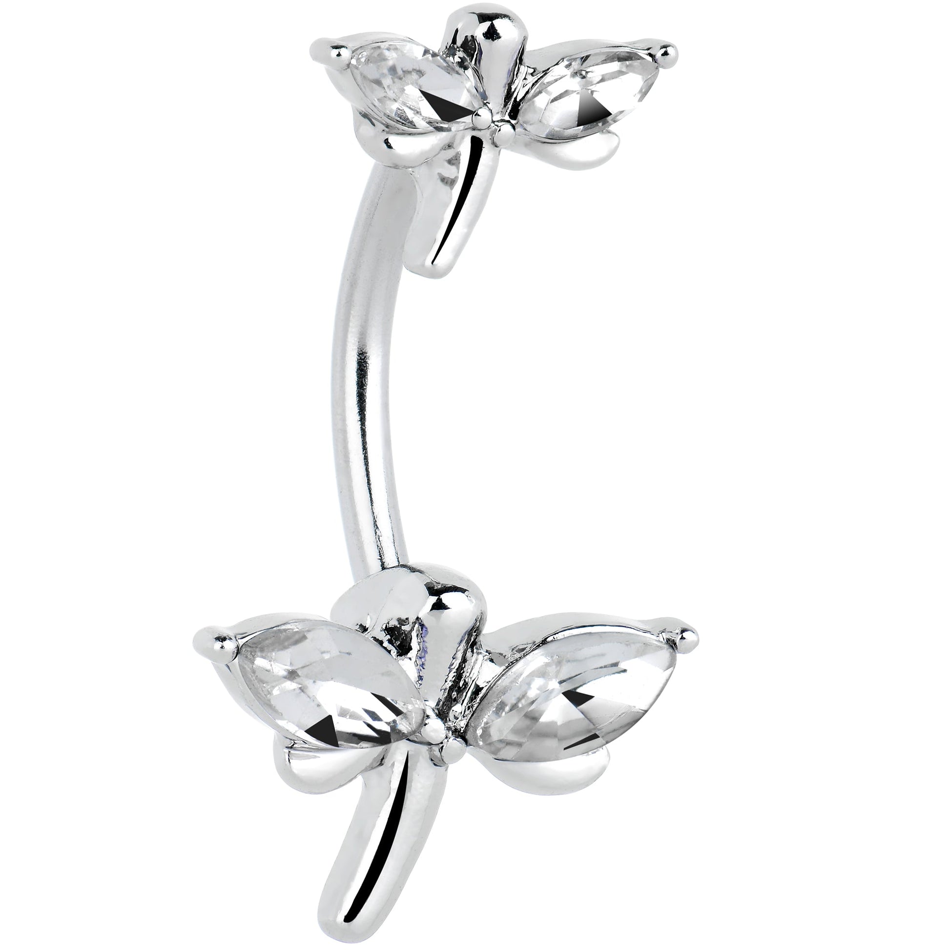 Clear Gem Simple Stylized Dragonfly Double Mount Belly Ring