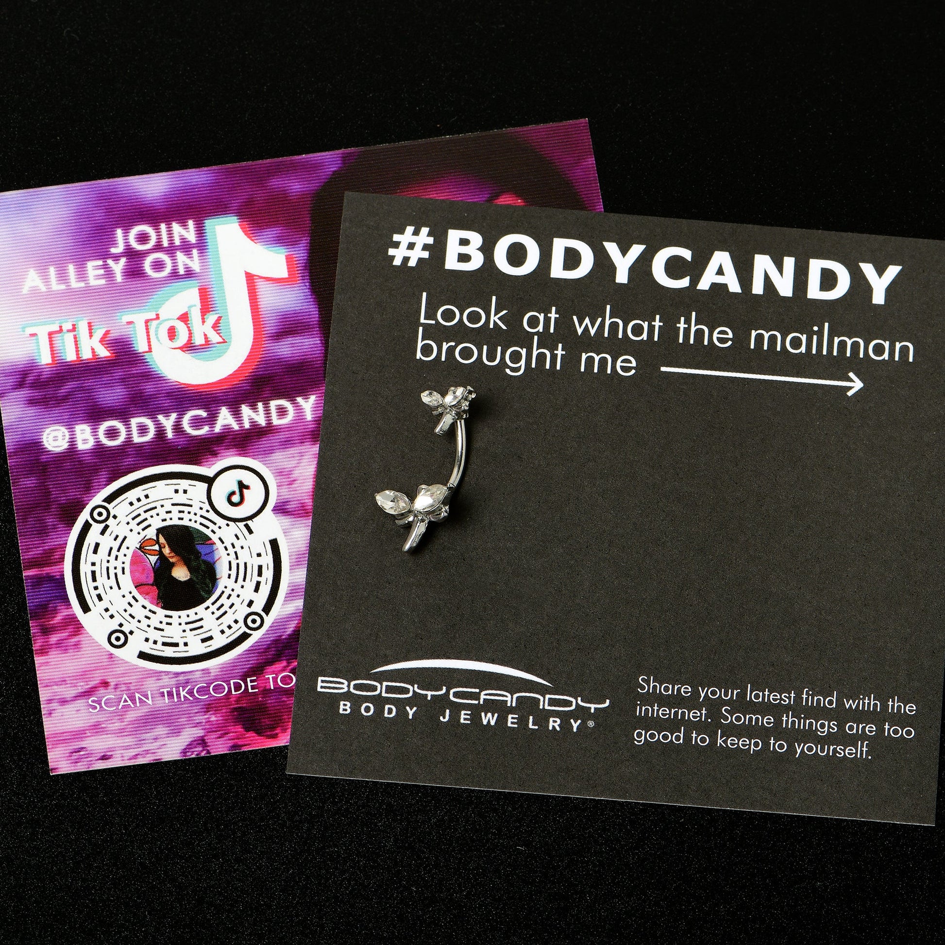 Dragonflies are constantly on the move so sometimes they just want to.....hang out. This 14 gauge navel ring is made with a 3/8" durable 316L surgical grade stainless steel curved barbell. Each of the ends features a stylized dragonfly charm, the simplicity of their style offset by the clear gems that make up their wings. The contrast of stylish luxury against the clean lines of their wings is extremely eye-catching and perfect navel jewelry for summer! You'll want to hang out with these dragonflies all the time!Specifications