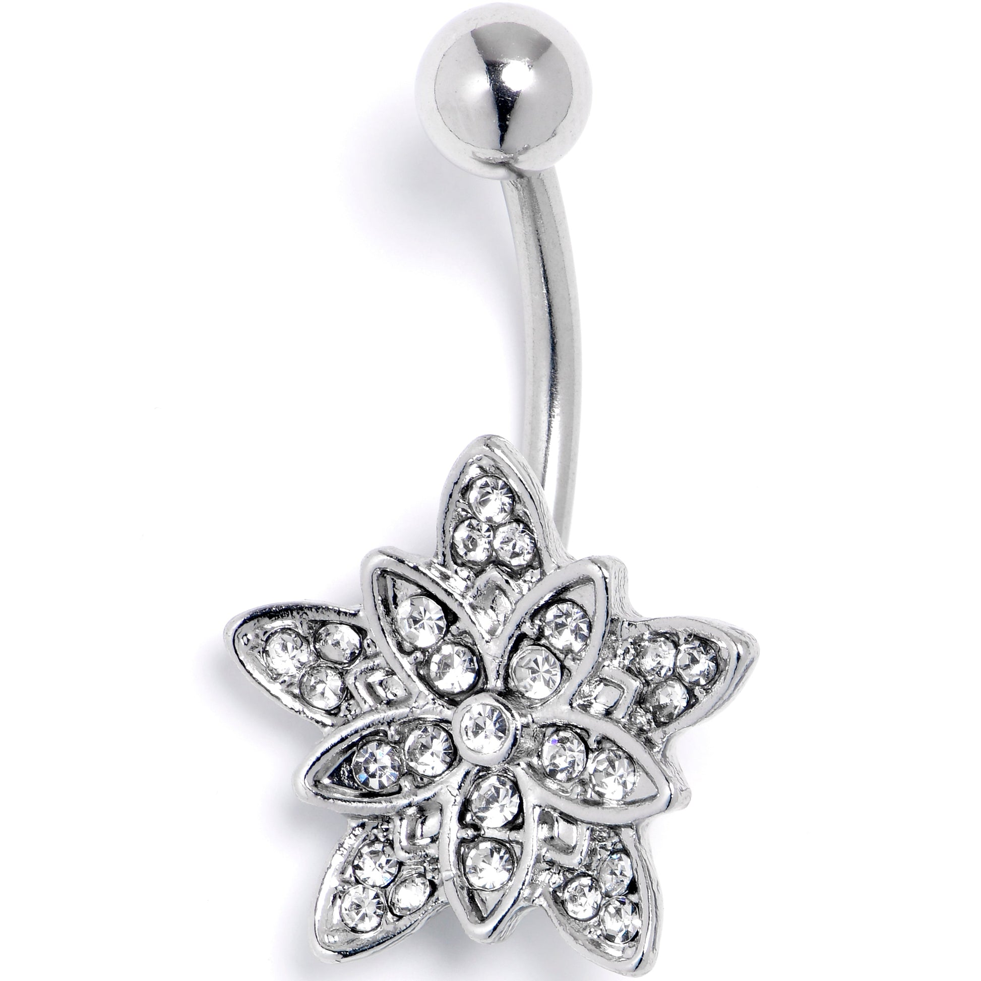 Clear Gem Snowflake Flower Belly Ring